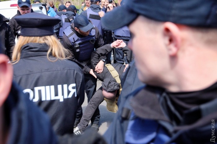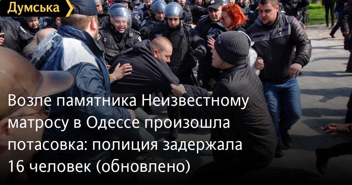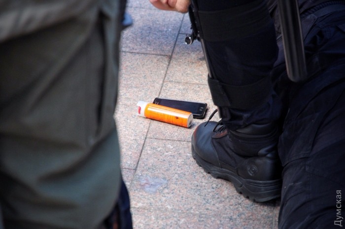 ОБНОВЛЕНО. После задержания шестерых активистов возле памятника Неизвестному матросу произошла еще одна потасовка. На это раз полиция задержала около 15 активистов. Также задержали одного человека от «куликовцев». При себе у одного из задержанных нашли дымовые шашки и газовый баллончик.