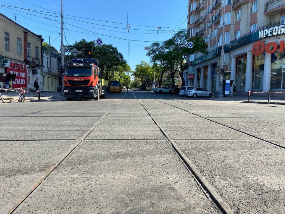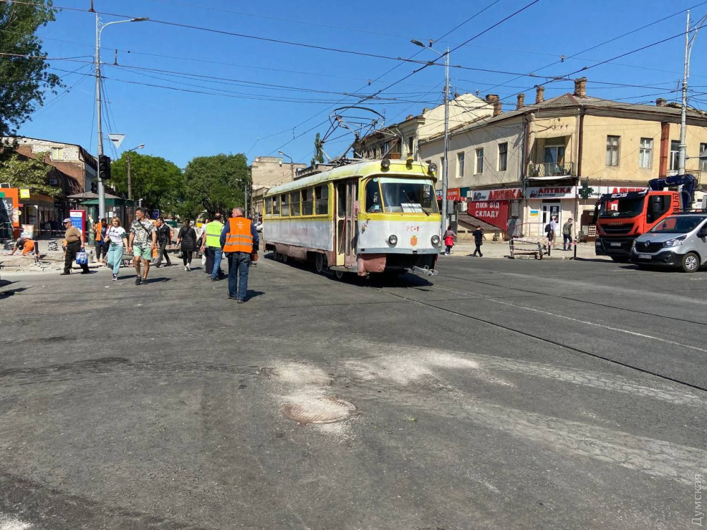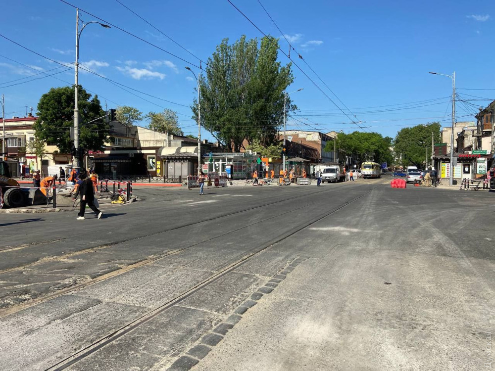 В Одесском горсовете сообщили, что сегодня начали обкатку нового участка трамвайных рельсов, который установили на перекрестке.