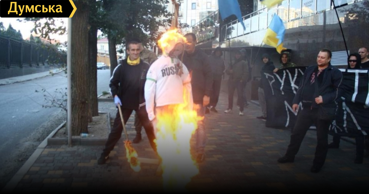 Возле российского консульства в Одессе повесили и сожгли чучело Путина