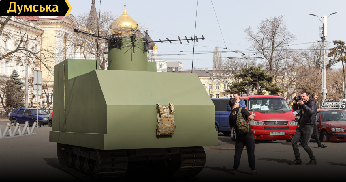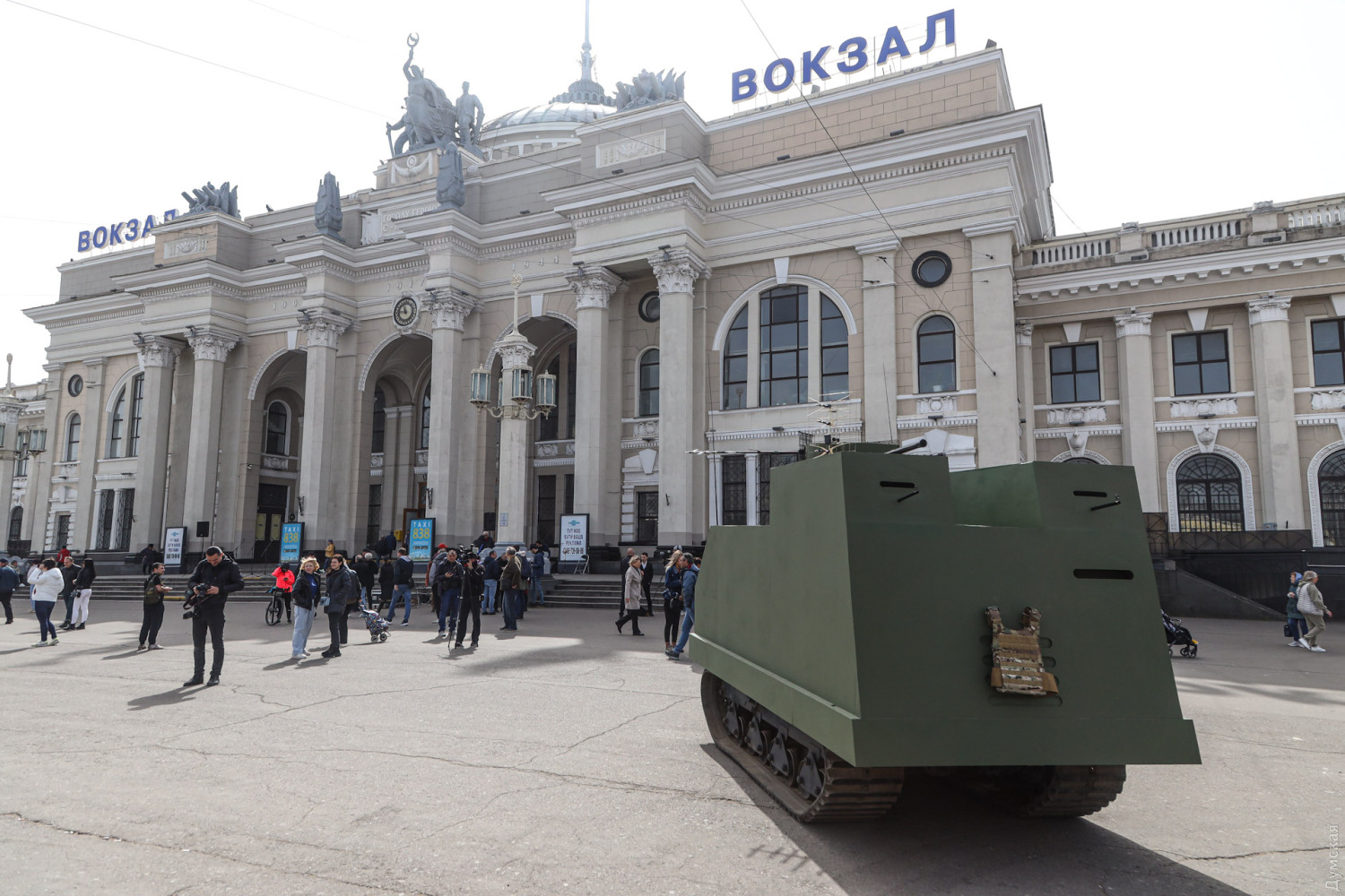 Полноразмерная копия танка «На испуг» с сегодняшнего дня охраняет спокойствие горожан и гостей города возле железнодорожного вокзала Одессы. Танк вооружен пулеметами и легкой пушкой. Кроме того, на башне размещены какие-то антенны, передает корреспондент «Думской». Импровизированный легкий танк (бронетрактор) НИ-1 («На испуг», «Январец», «одесский танк») выпускался одесскими предприятиями во время осады города летом-осенью 1941 года. По одним данным, всего под танк переоборудовали 55 тракторов, по другим — 69. У тракторов срезалась верхняя часть, после чего их закрывали броневыми (а иногда и просто стальными) листами, взятыми на судоремонтном заводе. Вооружались машины легкими орудиями или пулеметами в поворачивающихся башнях. Использовались как башни подбитых танков, так и самодельные конструкции. Чаще всего вооружение танка состояло из двух 7,62 мм пулеметов ДТ. При эвакуации советских войск из Одессы часть НИ-1 была взорвана экипажами, остальные просто бросили. До наших дней не сохранилось ни одного экземпляра. Танк, который стоит на постаменте в Серединском сквере, и тот, что на мемориале «411 батарея» — это поздние копии, изготовленные для съемок художественного фильма. СМЕРТЬ РОСІЙСЬКИМ ОКУПАНТАМ! Помітили помилку? Виділяйте слова з помилкою та натискайте control-enter |