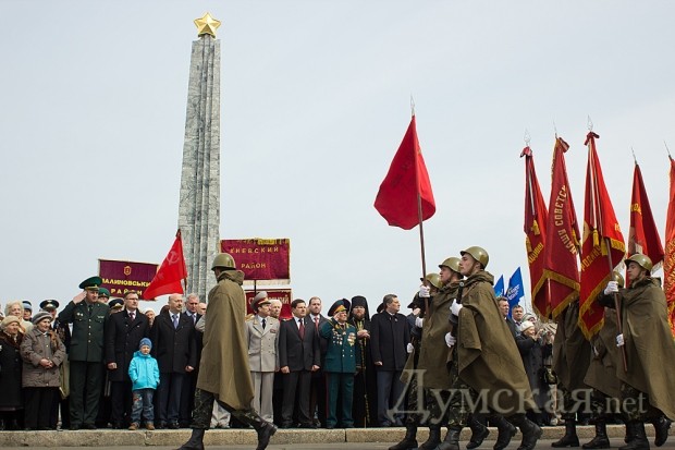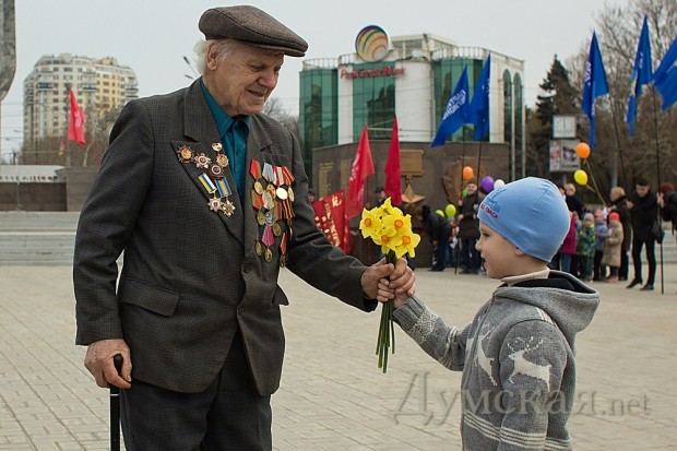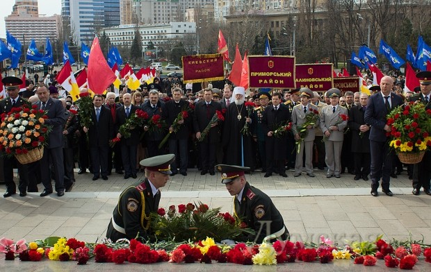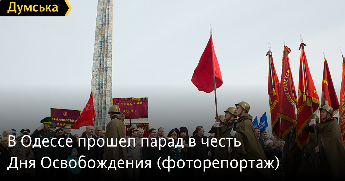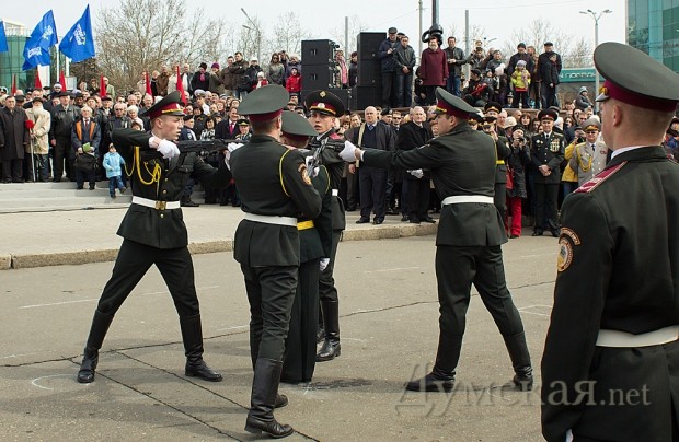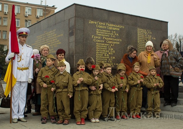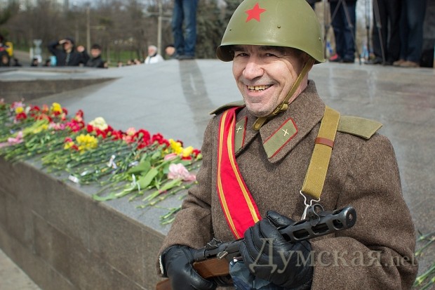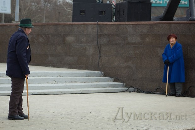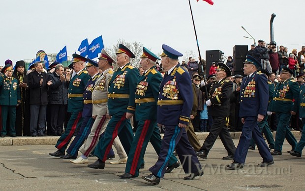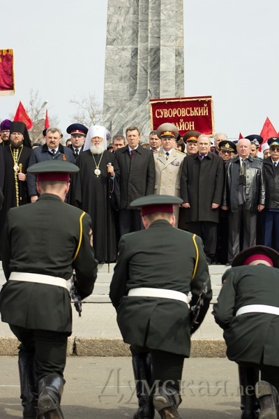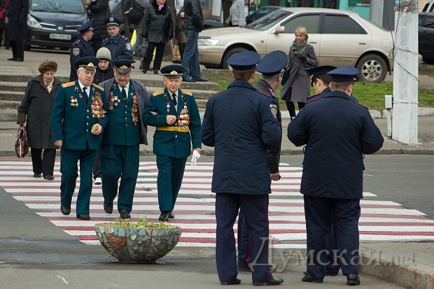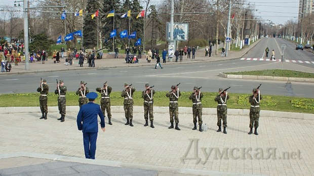Празднество началось после прибытия обязательных персон в лице народного депутата Кивалова, мэра города Костусева, губернатора Матвийчука, главы облсовета Пундика, митрополита Агафангела. Чиновники и ветераны возложили цветы, а затем по площади чеканным шагом прошли войска Одесского гарнизона.