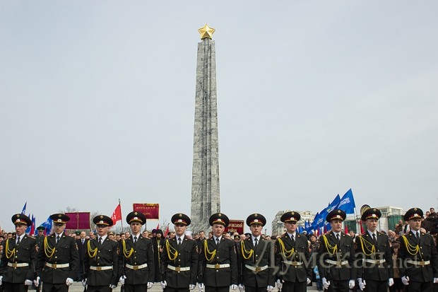 Возложение цветов и военный парад в честь Дня Освобождения прошли на площади 10 Апреля с достаточным размахом. Еще за час до официального начала на площади начали собираться немногочисленные, увы, виновники торжества — ветераны.
