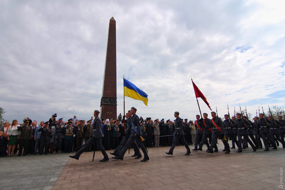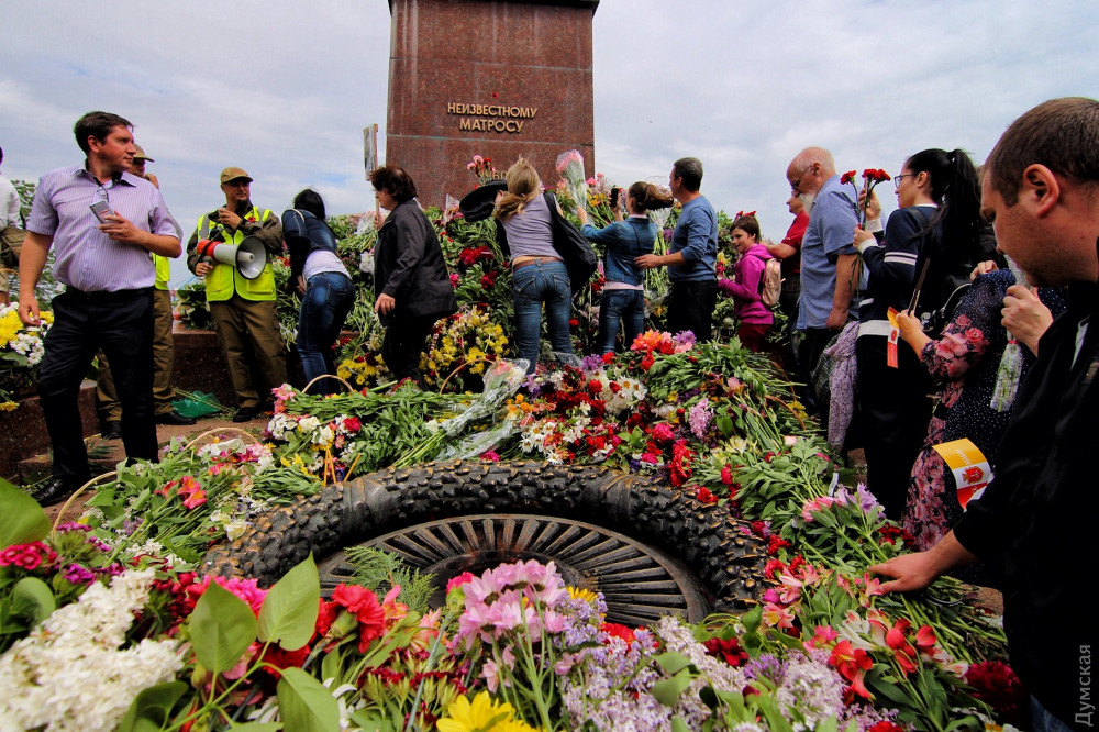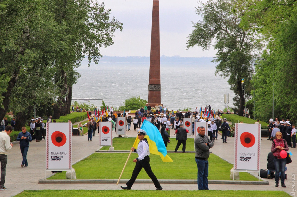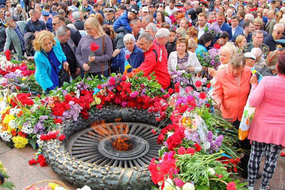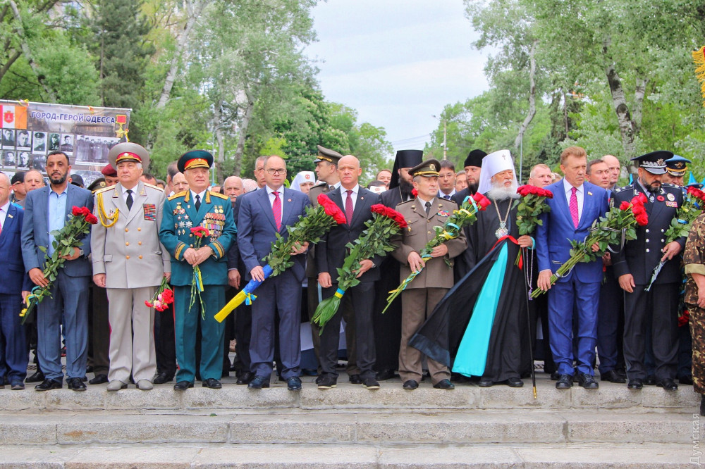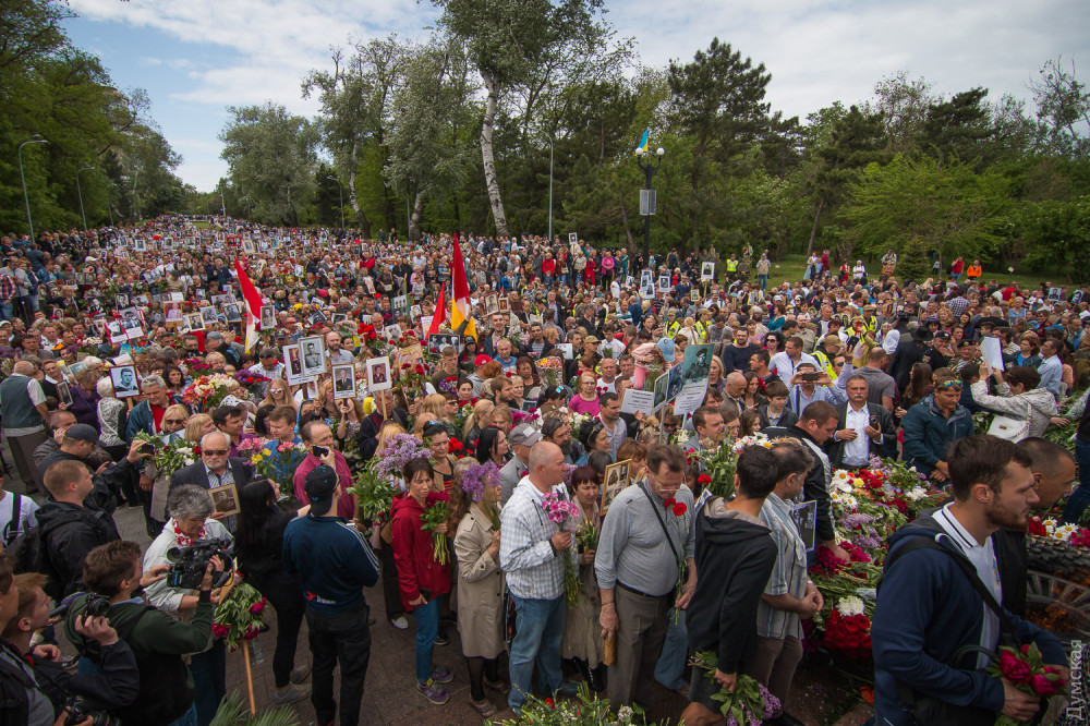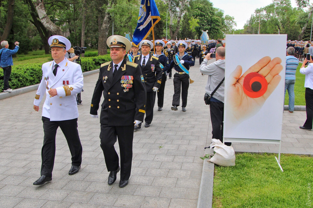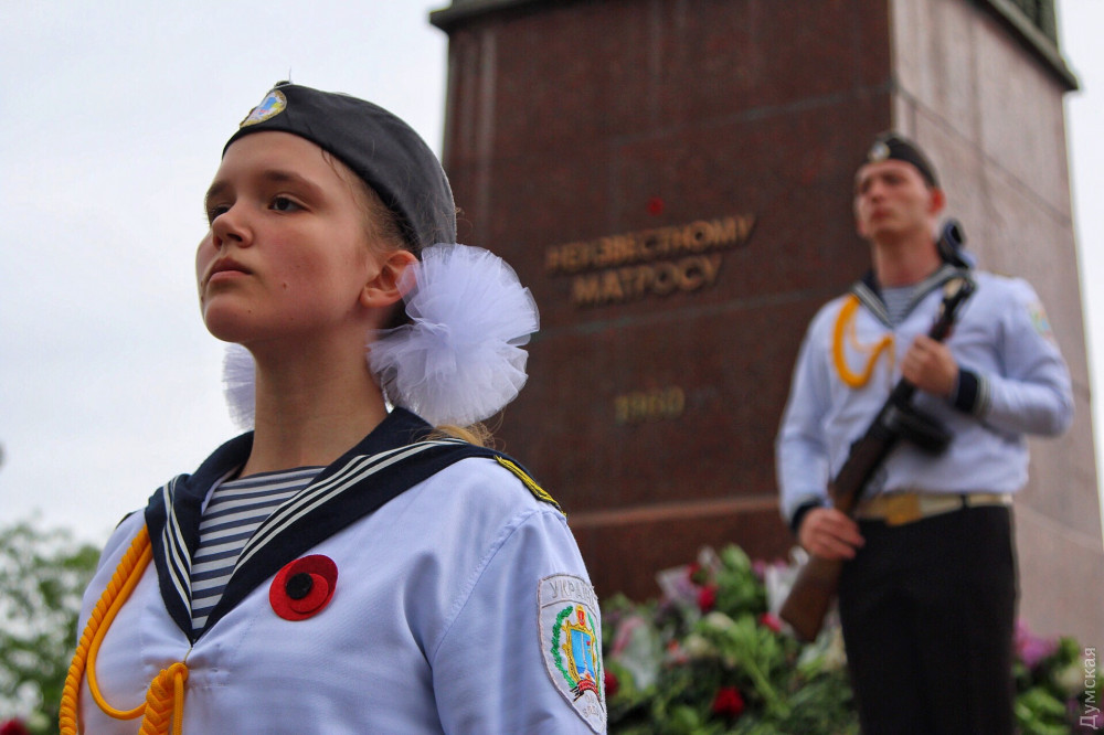 Спустя полчаса после официального возложения к памятнику пришли промаршировавшие чрез весь город курсанты Одесской национальной морской академии, а еще через час стартовала акция «Бессмертный полк».