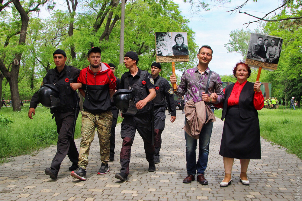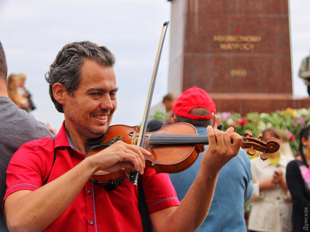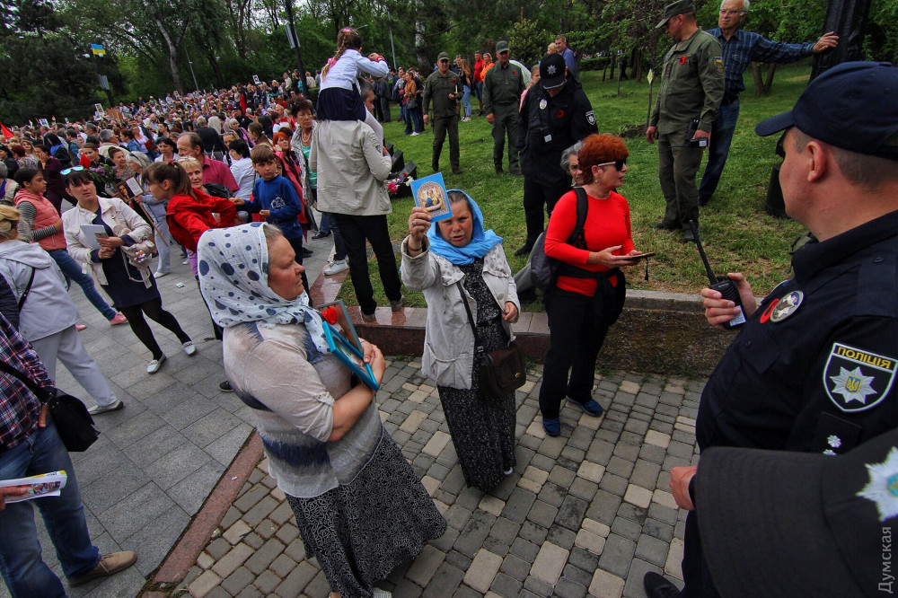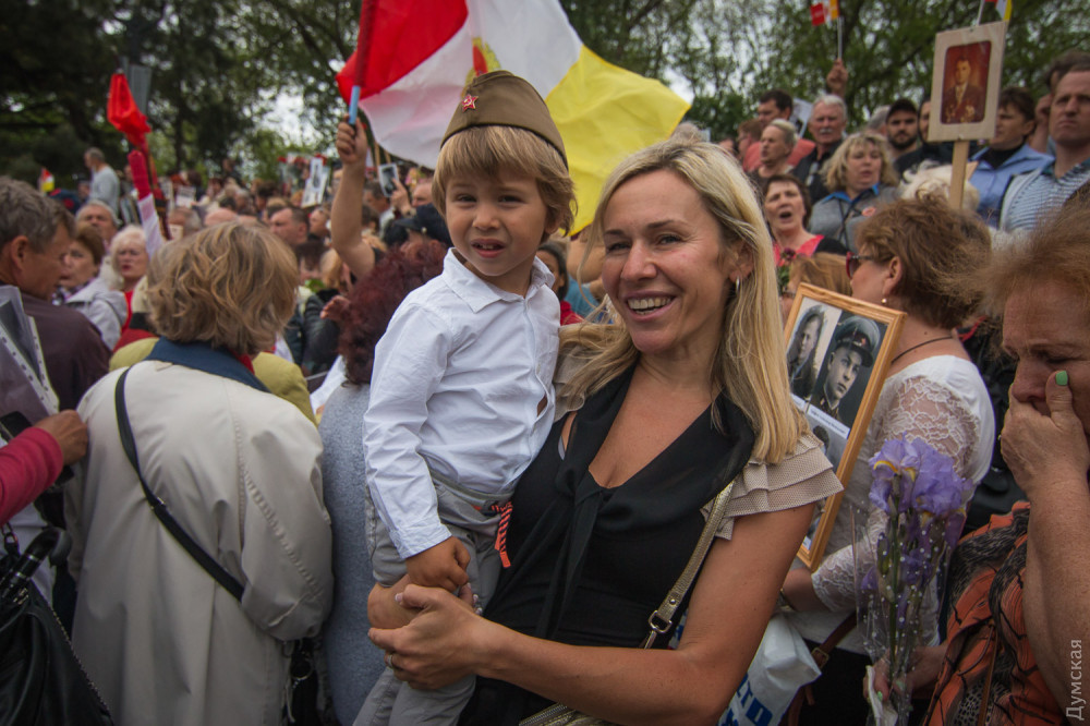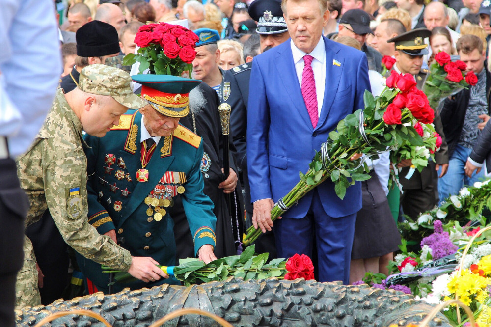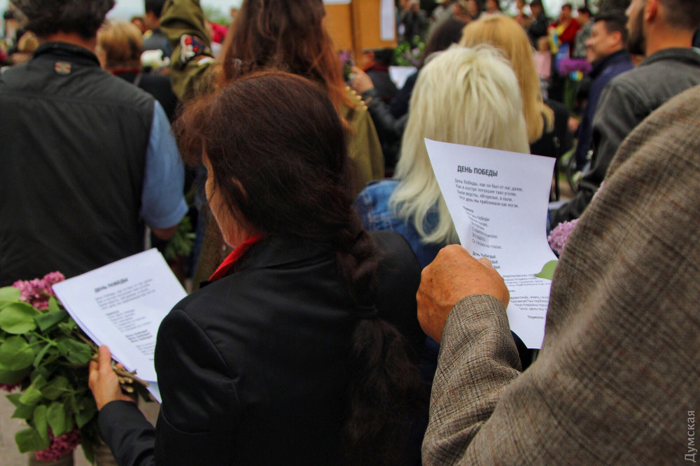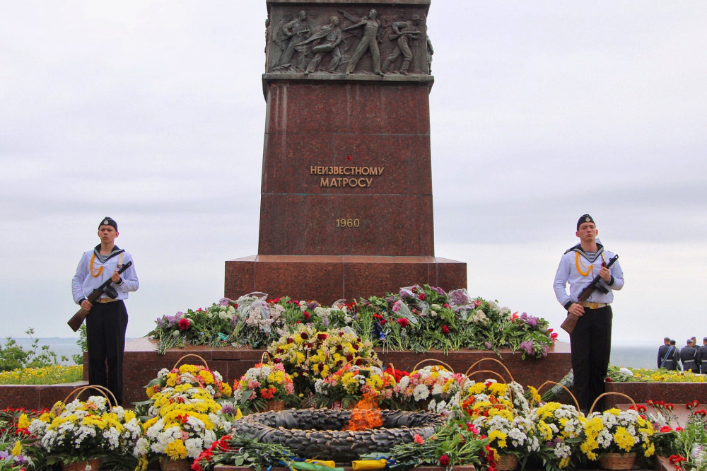 Спустя полчаса после официального возложения к памятнику пришли промаршировавшие чрез весь город курсанты Одесской национальной морской академии, а еще через час стартовала акция «Бессмертный полк».