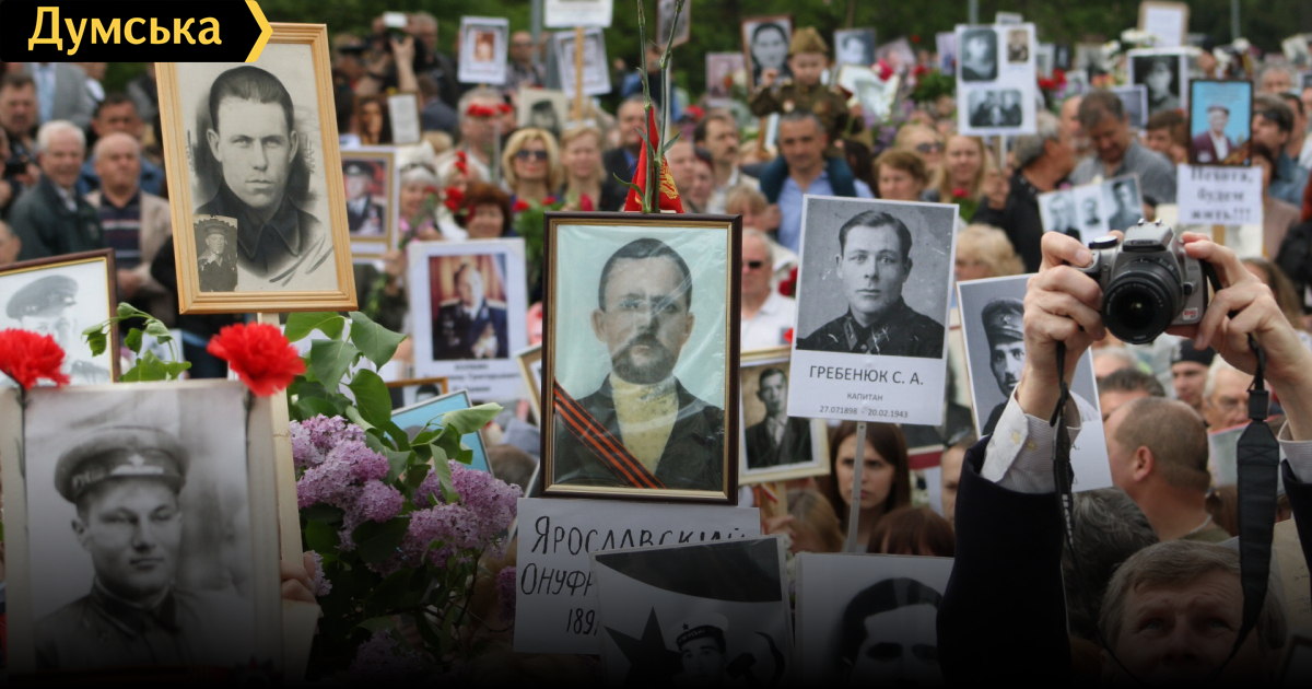 Сегодня на востоке страны «двое украинских военных погибли, четверо получили ранения». Так что, спасибо деду за мирное небо? Ценность той победы дискредитирована, её именем начата новая война, и не одна. «Бессмертный полк» банальная и подлая проимперская провокация. Игра на чувствах нормальных людей и вовлечение в процесс воинствующей неполноценности соцмаргиналов. Попробуйте выяснить какова родственная связь идущих с портретами и воинов на фото… оборжётесь. Фронтовые фотографии своих родных в одной типографии не заказывают и в урны не бросают.