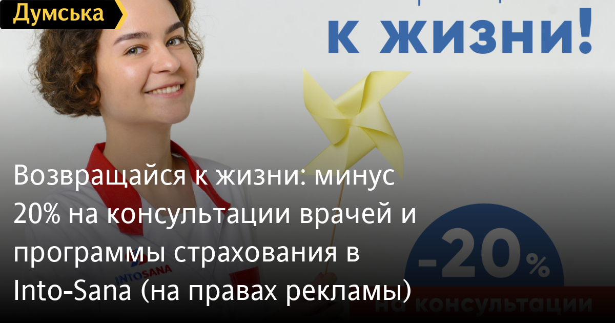 «Возвращайся к жизни»: минус 20% на консультации врачей и программы страхования в Into-Sana (на правах рекламы)Во время карантина вопросы медицины, не связанные с коронавирусом, ушли на второй план, но здоровье не учитывает ограничений и часто не терпит промедления. А ведь именно сейчас, во время угрозы COVID-19, очень важно поддерживать общее состояние здоровья, а течение хронических заболеваний тем более требует профессионального наблюдения. Прошедший период оказался тяжелым для граждан Украины не только из-за тягот самоизоляции и срыва планов, но также из-за экономических трудностей. Для того, чтобы облегчить для жителей Одессы и Киева возврат к прежней жизни, Into-Sana запускает инициативу «Возвращайся к жизни» и снижает стоимость консультаций своих специалистов на 20% с 12 по 25 мая. Кроме того, компания предлагает скидку 20% на программы страхования «Ургентный стационар», «Скорая медицинская помощь» и «Неотложная диагностика». «Забота о здоровье – основной залог качества жизни. Мы вместе пережили этот период и понимаем, как важна сейчас поддержка. Поддержка государства, поддержка от бизнеса, поддержка человек-человеку. Мы делаем этот шаг, чтобы облегчить выход из карантина для украинцев», – говорит генеральный директор Into-Sana Галина Усенко. Снижение цен произойдет в медицинских центрах Into-Sana в Одессе: ул. Варненская, 2; ул. Варненская, 1; ул. Академика Королева, 17; ул. Давида Ойстраха, 28; и Киеве: ул. Нижний Вал, 49а; ул. Днепровская набережная, 25; ул. Раисы Окипной, 4б. Into-Sana – сеть медицинских центров в Киеве и Одессе, основанная в 1995 году. Сегодня Into-Sana — это скорая медицинская помощь, многопрофильная клиника, услуги медицинского страхования, широкий спектр услуг по диагностике, собственная клиническая лаборатория, современные поликлиники с большим выбором специалистов, круглосуточная хирургическая помощь, современное стационарное отделение. СМЕРТЬ РОСІЙСЬКИМ ОКУПАНТАМ! Помітили помилку? Виділяйте слова з помилкою та натискайте control-enter |