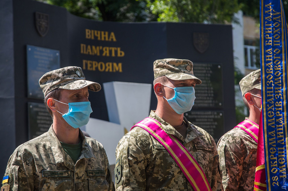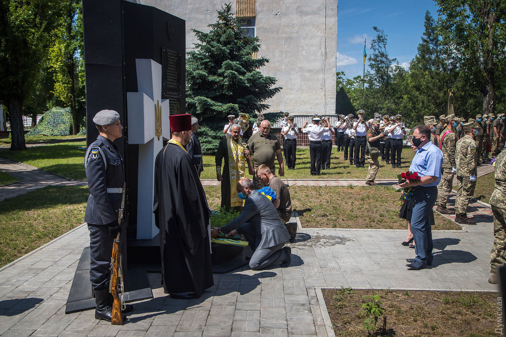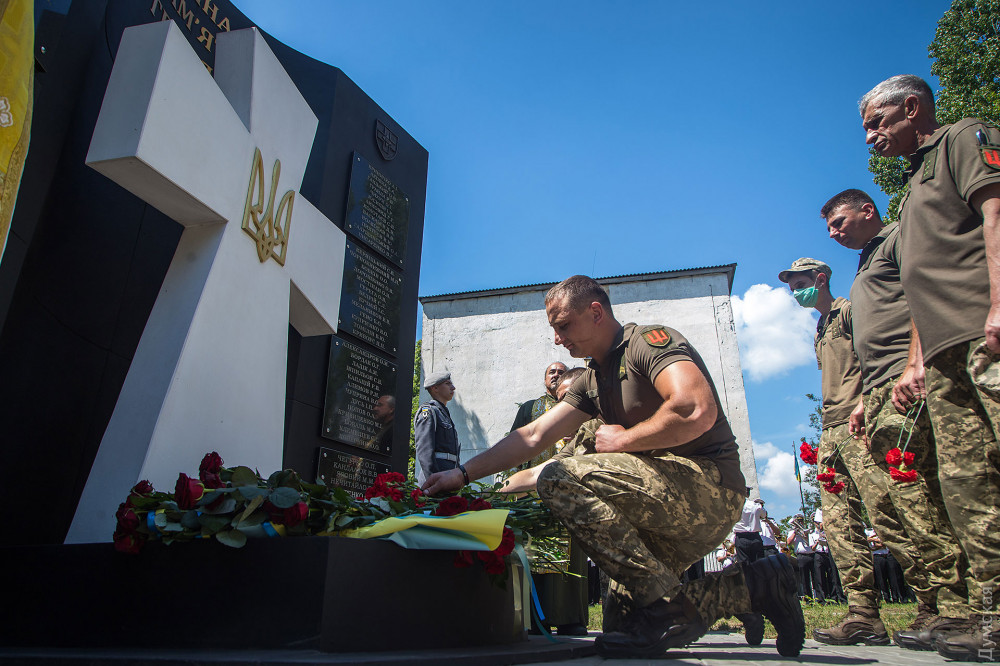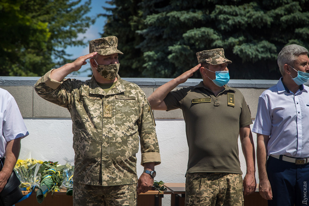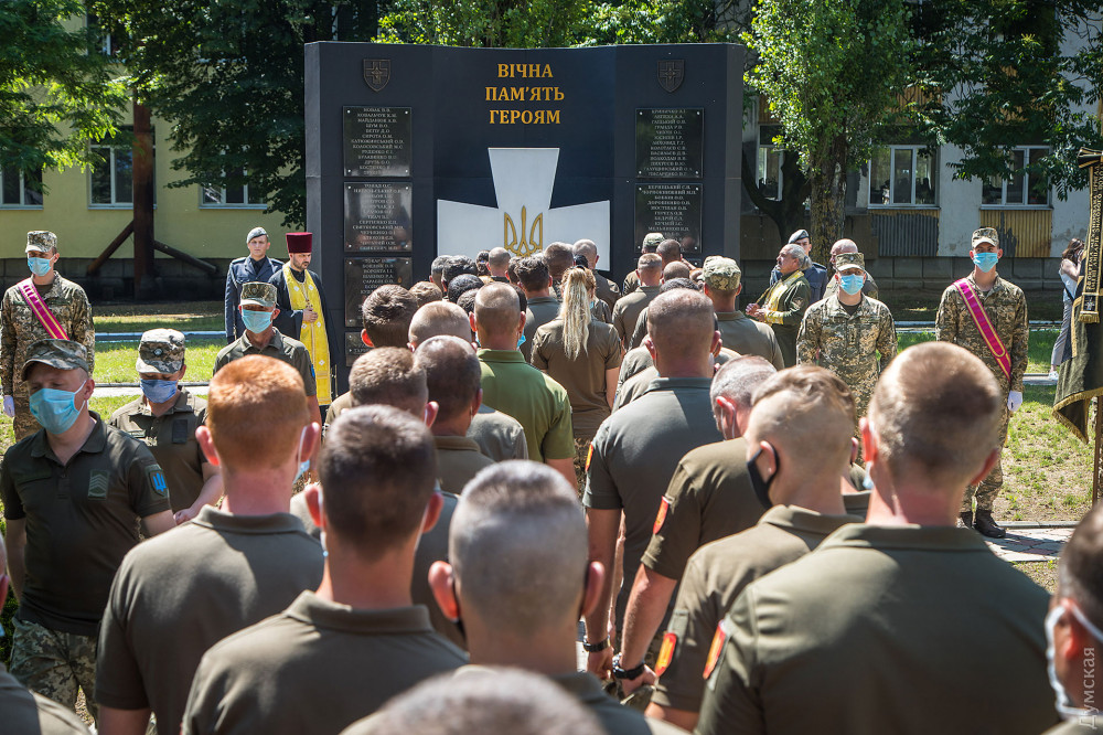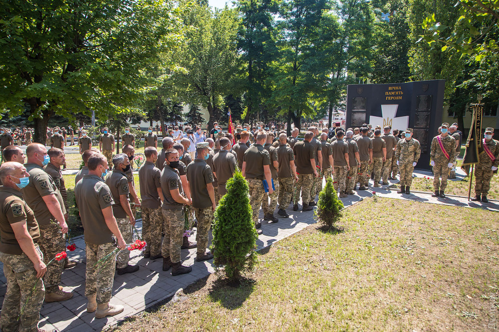 Затем военнослужащие почтили память погибших на российско-украинской войне и возложили цветы к памятнику героям АТО/ООС.