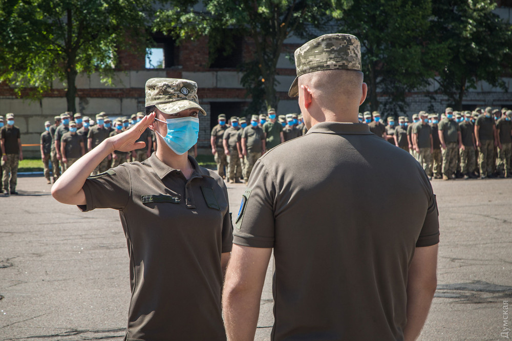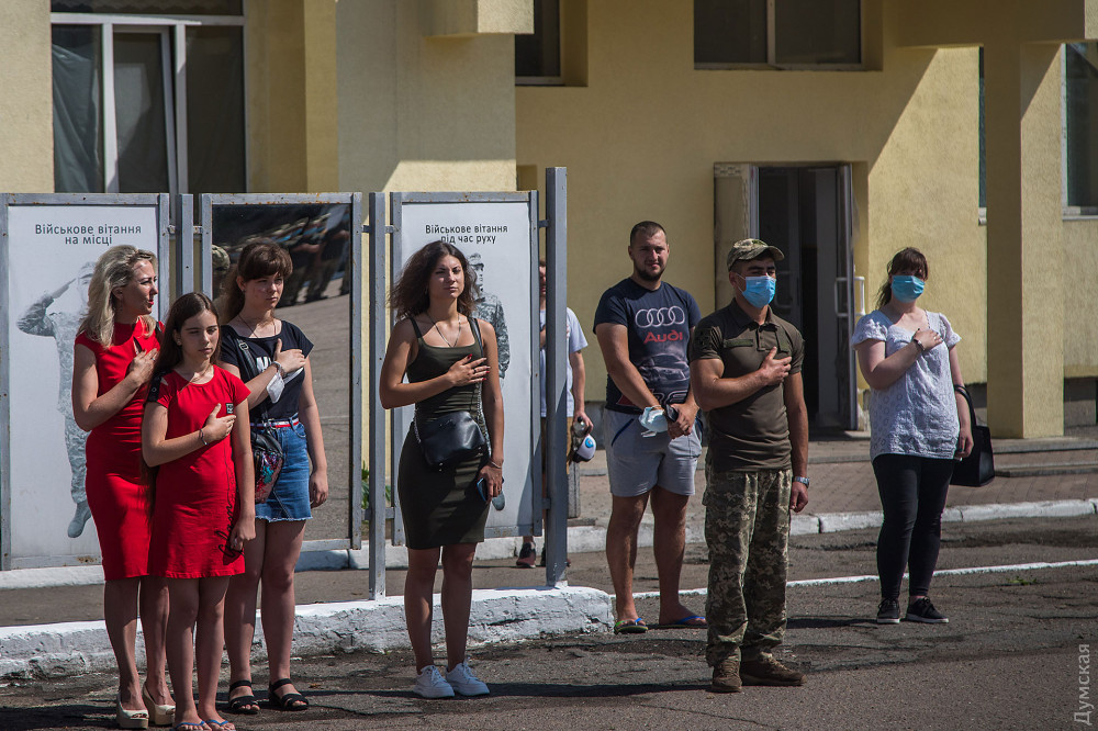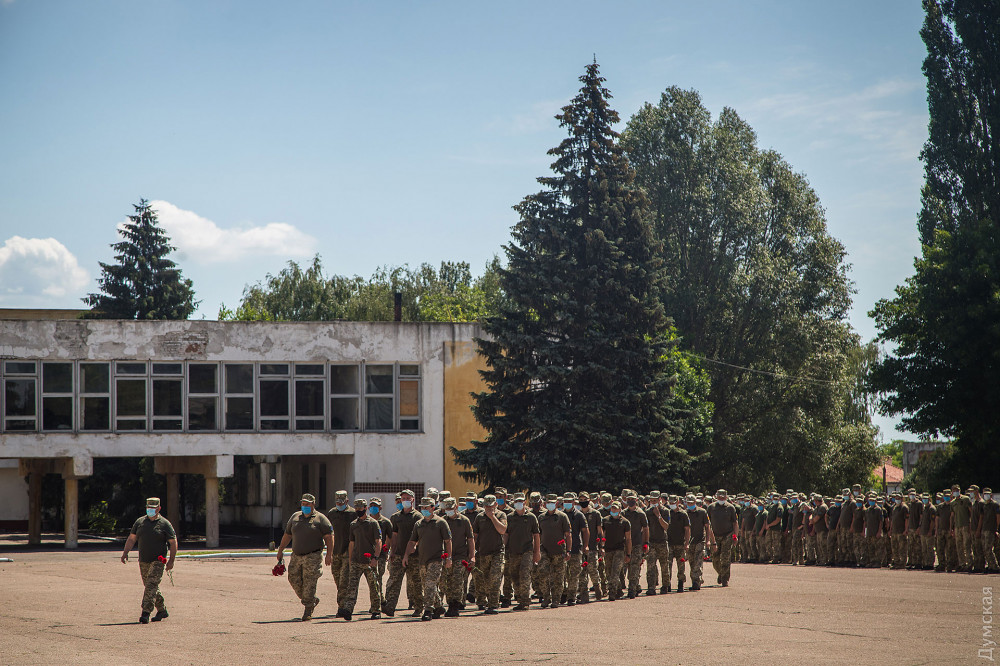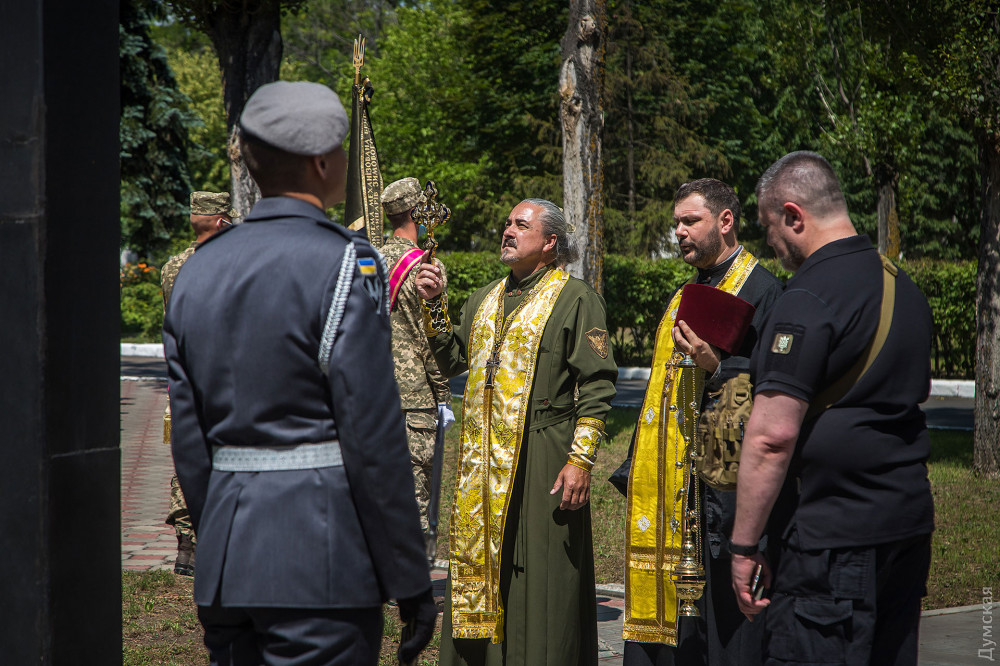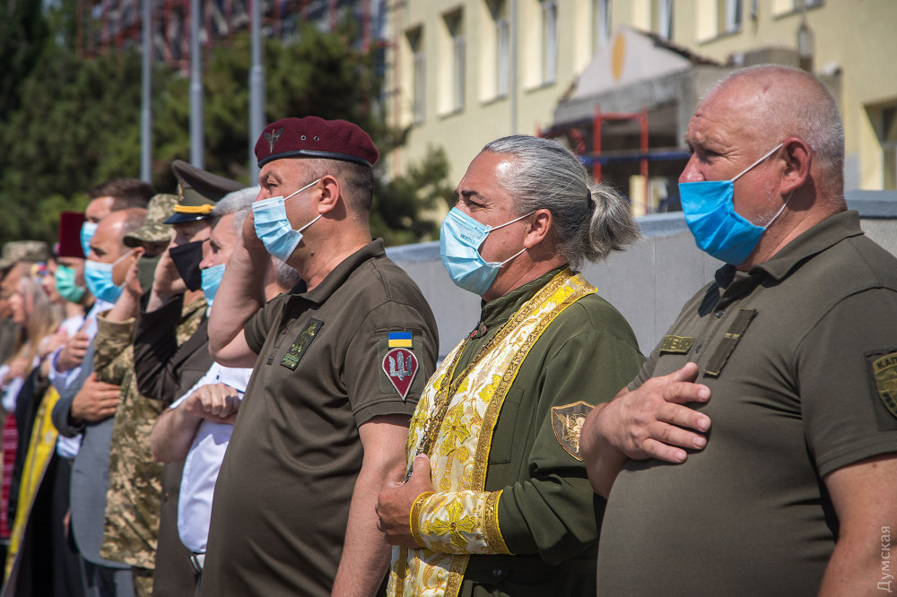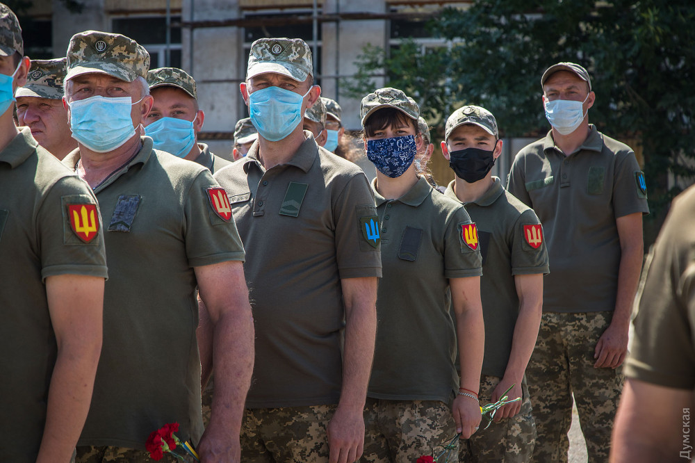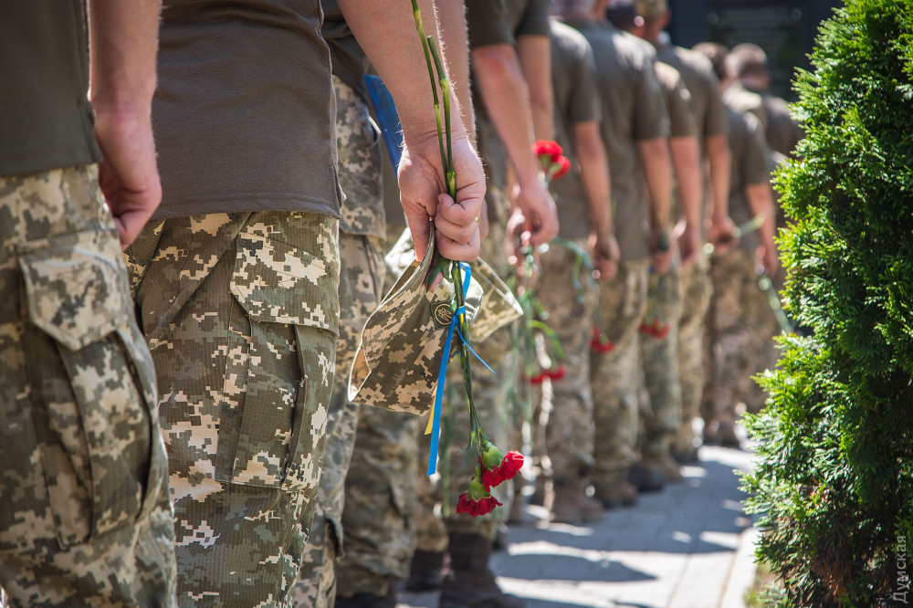 Затем военнослужащие почтили память погибших на российско-украинской войне и возложили цветы к памятнику героям АТО/ООС.