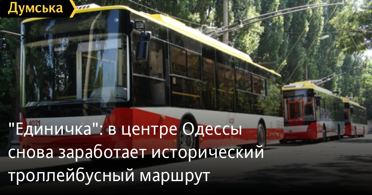 «Единичка» — самый первый (и самый короткий) маршрут одесского троллейбуса. Он был создан в 1941 году. Тогда в Одессу доставили первые десять троллейбусов модели ЯТБ-4 Ярославского автомобильного завода, но началась война, и запустить маршрут не успели.