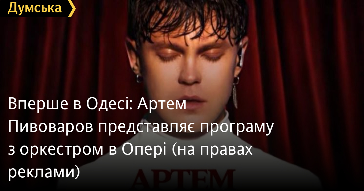 Вперше в Одесі: Артем Пивоваров представляє програму з оркестром в Опері (на правах реклами)Вперше в Одесі Артем Пивоваров представляє програму з оркестром в Опері. Одесити та гості міста зможуть стати свідками великої музичної події. Співак презентує шоу, в якому сучасна музика поєднується з величним звучанням оркестру НАОНІ та Хорової капели ім. Ревуцького. На глядачів чекають улюблені пісні в новому звучанні, зокрема з проєкту «Твої вірші, мої ноти», який дав старт цій особливій програмі. Зі сцени лунатимуть: «Барабан», «Думи», «Маніфест», «Там у тополі», «Дежавю», «Міраж» та інші композиції, що полюбилися слухачам. Нестримна енергія Пивоварова, пісні в супроводі народних інструментів, підсилені чоловічим хором, десятки музикантів, світлове шоу та неповторна атмосфера єднання – приходьте та відчуйте магію якісної української музики! Цей концерт, як і всі виступи Артема Пивоварова під час повномасштабної війни, має благодійну мету. Зібрані кошти буде спрямовано на допомогу Збройним Силам України, що ведуть надважку боротьбу за свободу, рідну землю та світле майбутнє нашої країни. Квитки можна придбати тут. СМЕРТЬ РОСІЙСЬКИМ ОКУПАНТАМ! Помітили помилку? Виділяйте слова з помилкою та натискайте control-enter |
