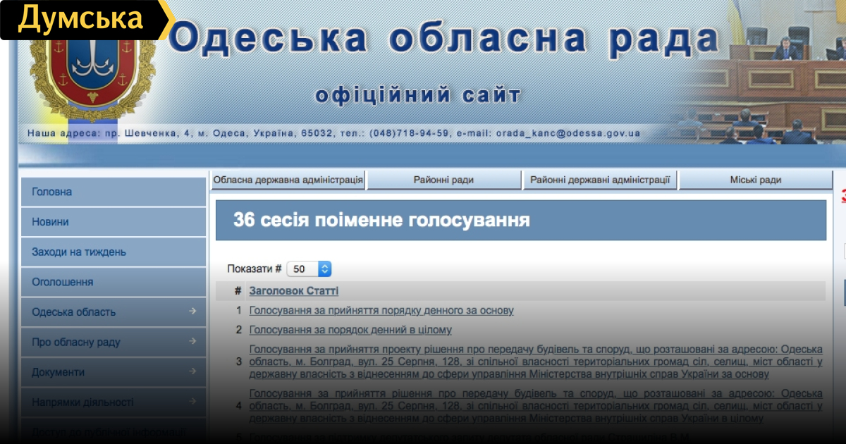 Предложенные председателем Одесского облсовета Алексеем Гончаренко, депутатами Локайчуком и Стасем изменения в регламент собрания вступили в силу. И теперь результаты всех голосований на минувшей сессии областного совета опубликованы на официальном сайте органа самоуправления. «Мы последовательно делаем нашу работу прозрачнее. Ведь именно так, шаг за шагом делая доступной информацию, и можно побороть коррупцию в стране, — считает Алексей Гончаренко. — Уже никто не сможет принять одиозные решения, спрятавшись от своих избирателей». СМЕРТЬ РОСІЙСЬКИМ ОКУПАНТАМ! Помітили помилку? Виділяйте слова з помилкою та натискайте control-enter