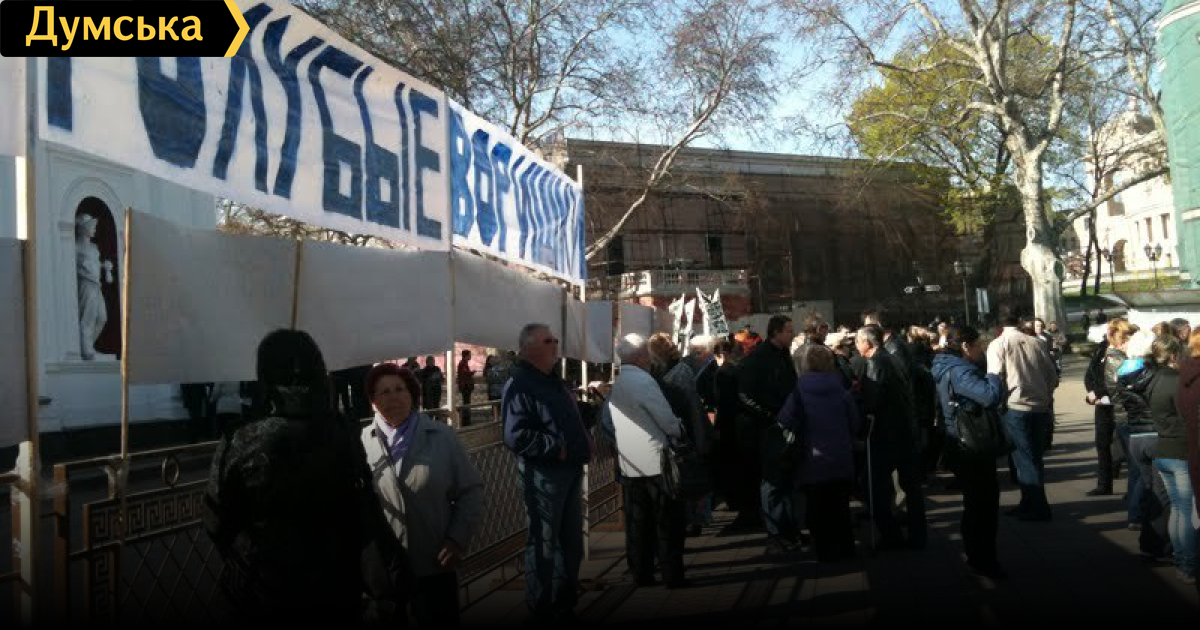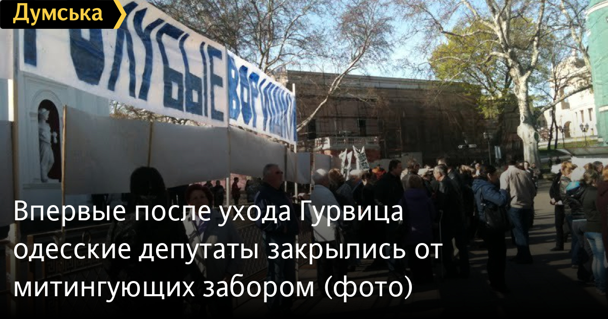 Примечательно, что от горсовета митингующих отделяет металлическое ограждение, которое появилось на Думской площади впервые с времен предыдущего мэра Одессы.