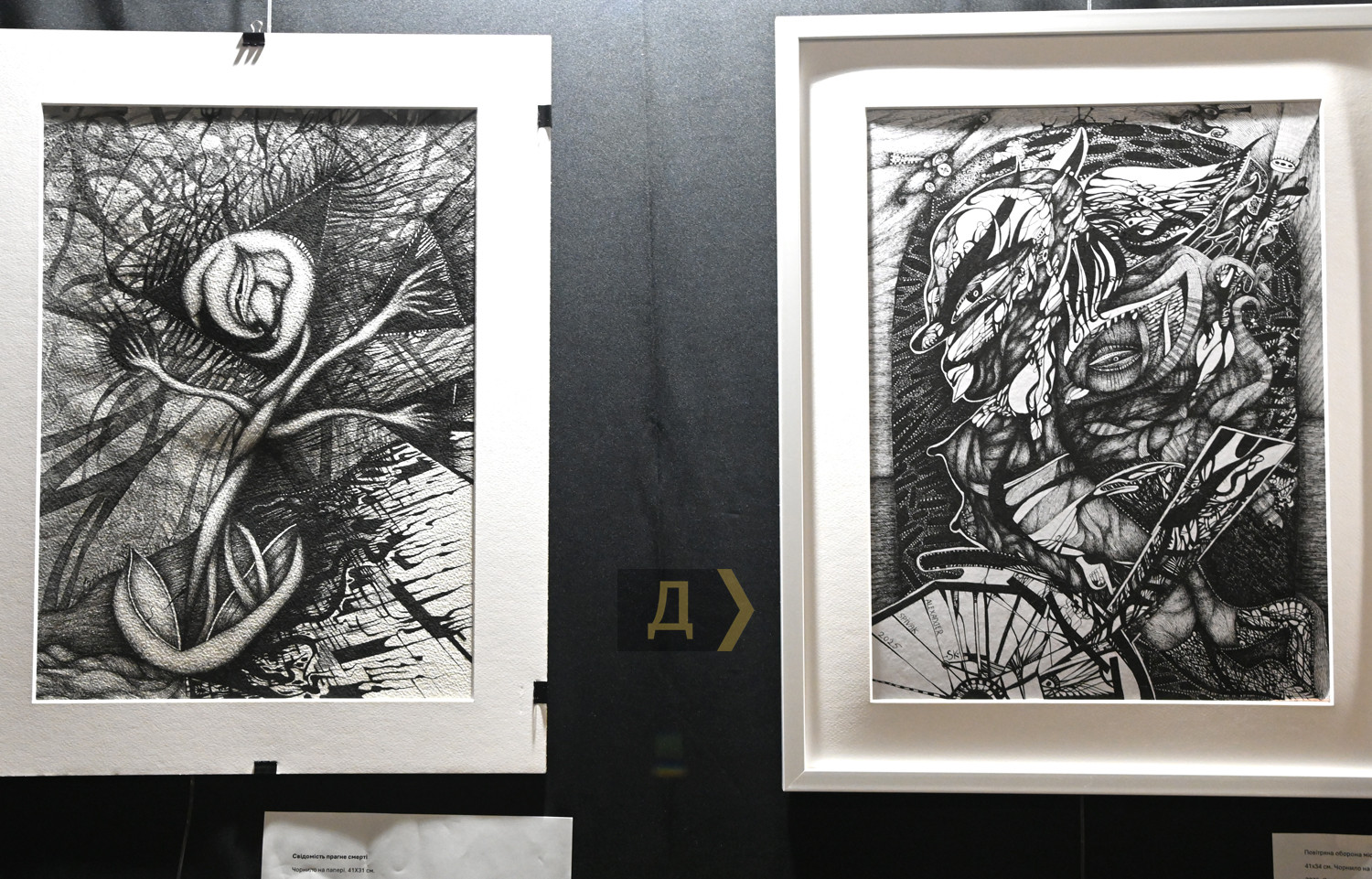 Деякі з глядачів побачили в химерних графічних аркушах, позначених безсумнівною майстерністю, багацько вишкірених пекельних сутностей. Вони немовби поглинають одне одного, намагаючись вийти з рам та проникнути до нашого світу.