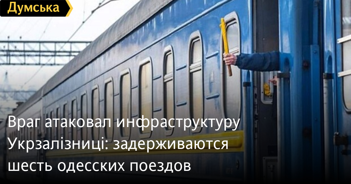 Ворог атакував інфраструктуру «Укрзалізниці»: затримуються шість одеських потягівВнаслідок атаки россії по підстанціях на «Укрзалізниці» є затримка потягів одеського та дніпровського напрямку. Через знеструмлення затримується біля 40 потягів міжнародного та місцевого призначення, повідомляє пресслужба. Частина рейсів прямує за зміненими маршрутами, задіяно 20 резервних тепловозів. Потяг №51/52 Запоріжжя-Одеса затримується більше ніж на три години, а в Дніпро потяг № 53/54 приїде з запізненням на півтори години. Те ж стосується потяга №253/254 з нашого міста у Кривий Ріг. На інших напрямках затрика менша — чекати доведеться 34 хвилини: №35/36 Ужгород-Одеса-Головна; №35/36 Пшемисль-Головний-Одеса-Головна; №37/38 Ужгород-Одеса-Головна. Наразі триває робота над відновленням живлення, зазначили в укрзалізниці. СМЕРТЬ РОСІЙСЬКИМ ОКУПАНТАМ! Помітили помилку? Виділяйте слова з помилкою та натискайте control-enter |