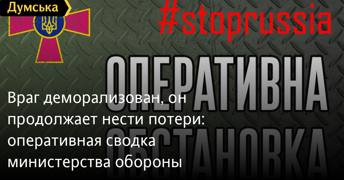 Продолжаются восьмые сутки героического противостояния Украинского народа российскому военному вторжению. Как информирует генштаб Минобороны, враг деморализован, он продолжает нести потери.