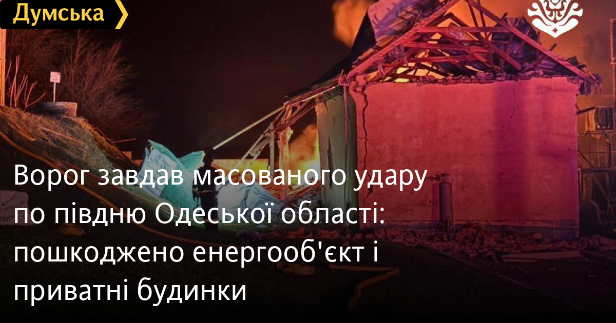 Ворог завдав масованого удару по півдню Одеської області: пошкоджено енергооб'єкт і приватні будинкиМасований удар по півдню Одеської області із застосуванням «шахедів» завдали окупанти в ніч на 2 грудня. Як повідомив глава ОВА Олег Кіпер, попри активну роботу ППО, постраждав енергетичний об'єкт, адміністративна будівля і будинки в приватному секторі. На щастя, інформації про загиблих і постраждалих немає. На місцях прильотів виникли пожежі, які рятувальники швидко ліквідували, але атака призвела до перебоїв з електрикою. До гасіння вогню залучалися 20 рятувальників і п'ять одиниць техніки. На місці працює міський штаб з ліквідації наслідків. Критична інфраструктура тимчасово працює на генераторах. Розгорнуто 11 пунктів незламності. Відзначимо, що під ударом цієї ночі опинився Болград. За даними моніторингових каналів, по ньому випустили кілька десятків безпілотників. СМЕРТЬ РОСІЙСЬКИМ ОКУПАНТАМ! Помітили помилку? Виділяйте слова з помилкою та натискайте control-enter Новини по цій темі: 1 січня: Нічний удар по Одещині: пошкоджено енергетичну інфраструктуру та житлові будинки (фото, відео) 31 грудня 2025: Новорічний наліт: Одеса під ударом російських шахедів 25 грудня 2025: Ворог вночі атакував Одеську область: одна людина загинула, двоє отримали поранення (фото) 23 грудня 2025: Ворог атакував південь Одещини: пошкоджено суховантаж, приватні будинки та енергооб'єкт (фото) 22 грудня 2025: Ворог вночі атакував Одесу: постраждав чоловік, частина Пересипського району залишилася без світла |
