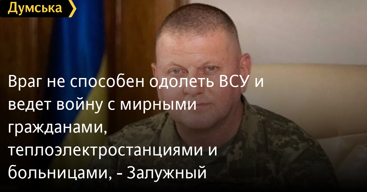 Ворог не здатен здолати ЗСУ і веде війну з мирними громадянами, теплоелектростанціями та лікарнями, — ЗалужнийБудучи нездатним здолати Збройні Сили України, противник веде війну з мирними громадянами, теплоелектростанціями, лікувальними установами і навіть немовлятами — так головнокомандувач ЗСУ Валерій Залужний прокоментував ракетні удари російських окупантів по об'єктах критичної інфраструктури України. За його словами, сьогодні ворог здійснив 67 пусків крилатих ракет повітряного («Х-101/Х-555») і морського базування («Калібр»). Сили оборони знищили 51 крилату ракету, а також п'ять дронів-камікадзе типу «Ланцет». Тільки по Києву окупанти випустили 30 ракет, 20 з яких знищено. Валерій Залужний подякував українським захисникам за високий професіоналізм: «Ви є взірцем для всього світу. Те, що ви робите в умовах постійної нестачі озброєння, техніки, боєприпасів — на межі можливого». Він також висловив подяку країнам-партнерам за надані системи ППО і ПРО. «Мир у Європі безпосередньо залежить від стійкості та захищеності України», — зазначив Залужний. СМЕРТЬ РОСІЙСЬКИМ ОКУПАНТАМ! Помітили помилку? Виділяйте слова з помилкою та натискайте control-enter |
