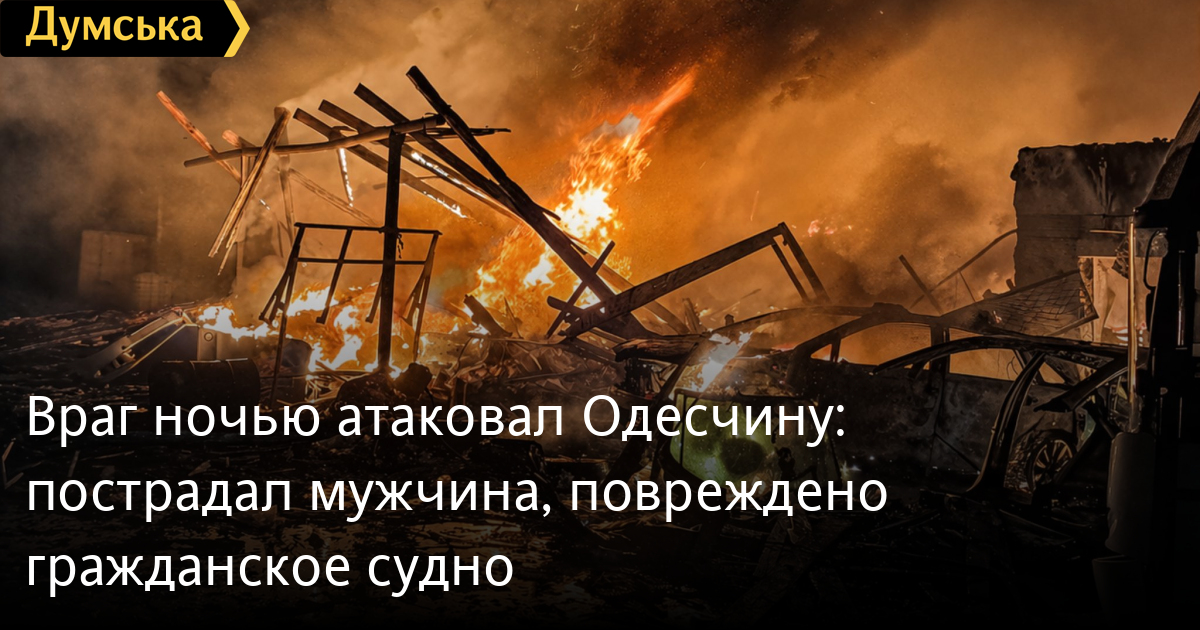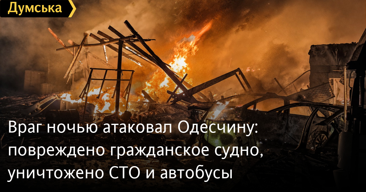 Враг ночью атаковал Одесчину: повреждено гражданское судно, уничтожено СТО и автобусыМассированной атаке рф подвергся Измаильский район минувшей ночью. К счастью, обошлось без жертв. Как сообщил глава Одесской ОВА Олег Кипер, оккупанты били по гражданской и портовой инфраструктуре. В результате на территории порта повреждены гражданское судно под флагом Панамы, причал и баржа. Повреждения получило и портовое оборудование. «Также разрушено здание СТО с последующим возгоранием. Уничтожены два пассажирских автобуса, семь легковых автомобилей. Под удар попали и шесть частных домов, в них повреждены кровли. Также поврежден автомобиль скорой помощи», — отметил Кипер. Обошлось без погибших и пострадавших. В ГСЧС региона добавили, что общая площадь пожара составила 700 кв. м, а работу пожарных сильно осложняли повторные сигналы воздушной тревоги. К ликвидации последствий привлекались 20 человек и пять единиц техники. СМЕРТЬ РОССИЙСКИМ ОККУПАНТАМ! Заметили ошибку? Выделяйте слова с ошибкой и нажимайте control-enter
