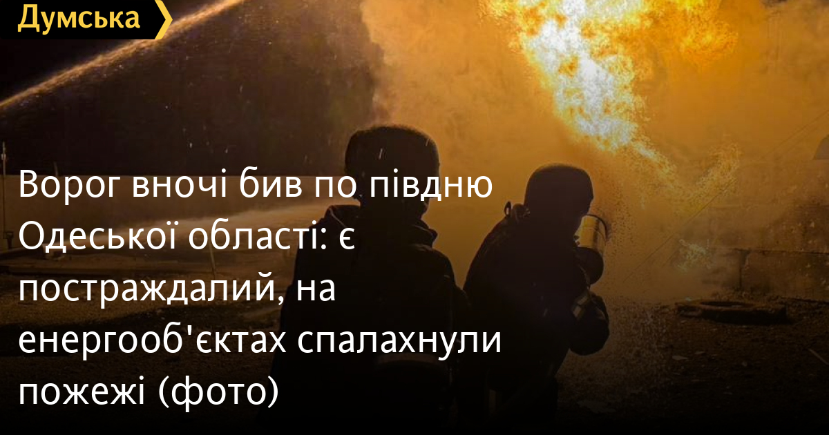 Ворог вночі бив по півдню Одеської області: є постраждалий, на енергооб'єктах спалахнули пожежіОдна людина отримала осколкові поранення в результаті нічної масованої атаки окупантів на Одеську область. Їй надали необхідну медичну допомогу. Як повідомив глава ОВА Олег Кіпер, ворог бив по півдню регіону ударними безпілотниками та, незважаючи на роботу сил ППО, є пошкодження об'єктів енергетичної та транспортної інфраструктури. «В результаті ударів на декількох енергетичних об'єктах спалахнули пожежі, які оперативно ліквідовані рятувальниками. Також пошкоджені депо «Укрзалізниці» та адміністративні будівлі», — зазначив Кіпер. В управлінні ДСНС регіону додали, що до ліквідації наслідків залучалися шість одиниць техніки та майже 30 рятувальників. Глава ОВА підкреслив, що критична інфраструктура регіону працює на генераторах, відкриті пункти незламності. СМЕРТЬ РОСІЙСЬКИМ ОКУПАНТАМ! Помітили помилку? Виділяйте слова з помилкою та натискайте control-enter