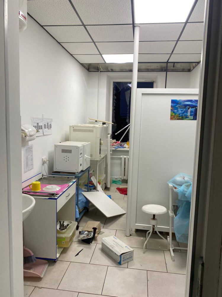 «У результаті пошкоджено два приватні житлові будинки, зерновий склад, легкові автомобілі. Також постраждала районна лікарня: у медзакладі вибито вікна та пошкоджено фасад зі стелею», — зазначив Олег Кіпер.