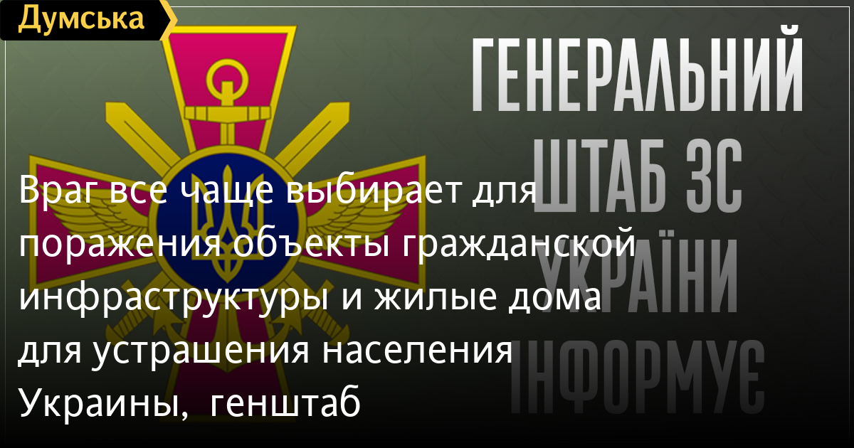 «С целью устрашения населения Украины враг все чаще выбирает для поражения объекты гражданской инфраструктуры и жилые дома», — сообщают в штабе.
