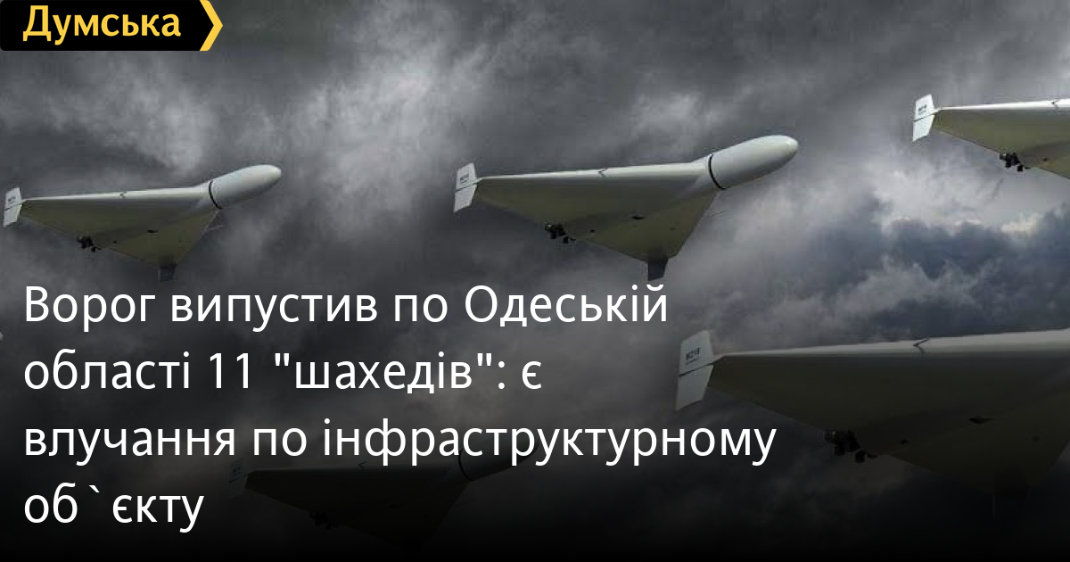 Як повідомили Сили оборони півдня України, противник випустив по нашому регіону 11 безпілотників Shahed-131/136 з тимчасово окупованого Криму (мис Чауда). Ворог спрямував їх з акваторії Чорного моря по прибережних районах області.