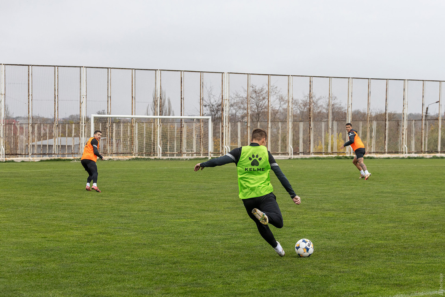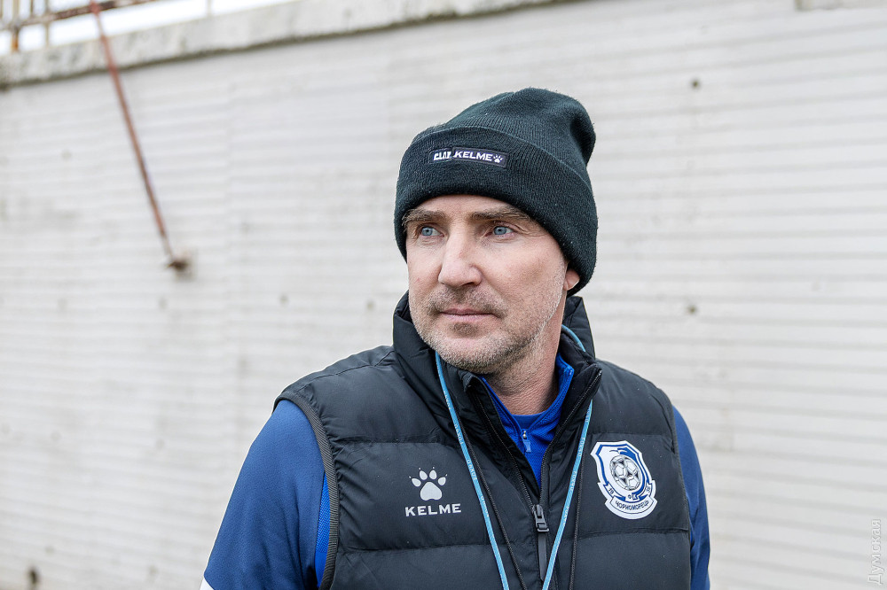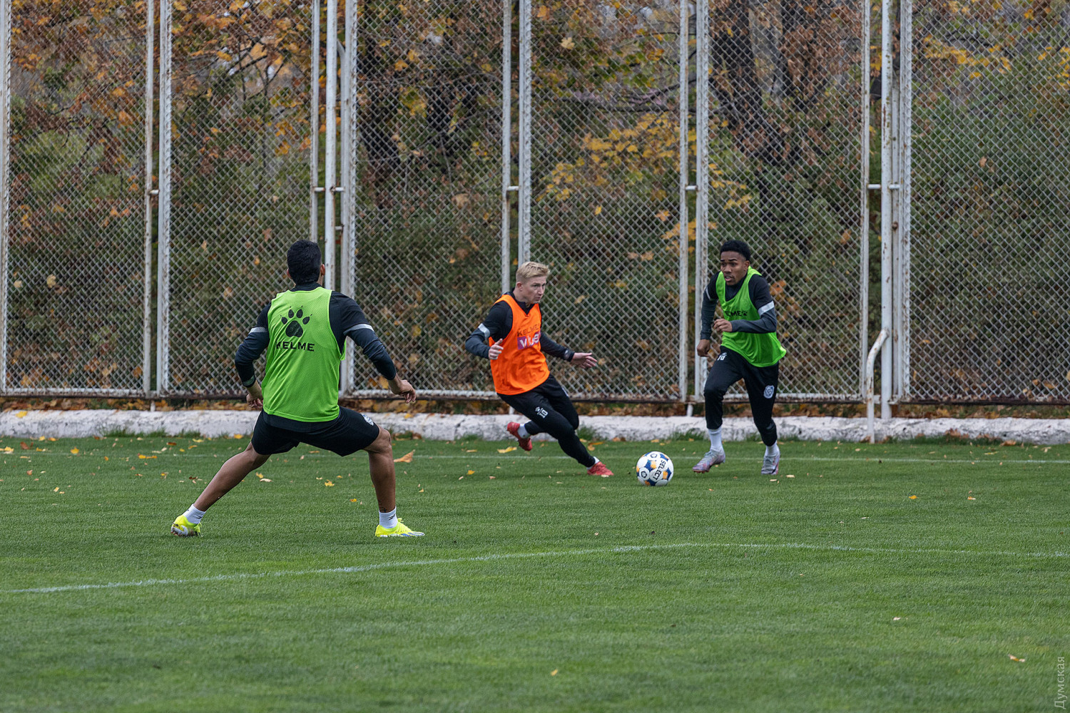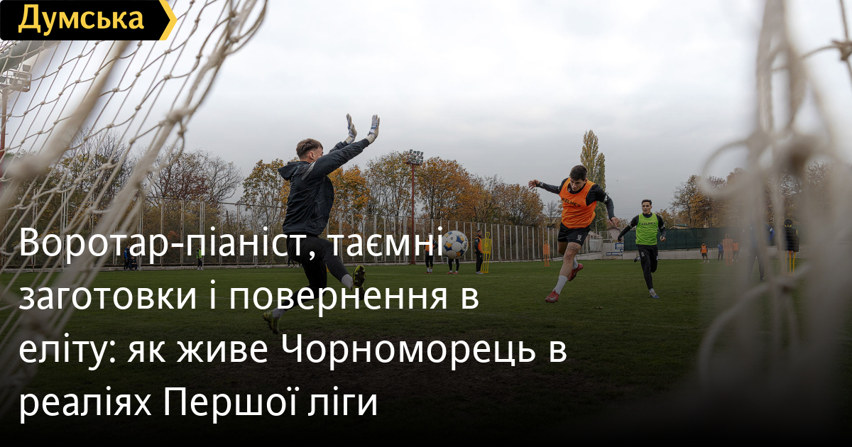 Прекрасний старт «Чорноморця» в Першій лізі ґрунтовно підбадьорив одеських уболівальників, розчарованих вильотом улюбленого клубу з Прем'єр-ліги. Впевнена гра підопічних Олександра Кучера дозволяє з надією дивитися в майбутнє. Ми вирішили відвідати команду і вирушили на тренувальну базу в Совіньон, щоб дізнатися, чим живуть «моряки». Звичайний будній вівторок. Тишу туманного осіннього ранку розрізає майже нестямний крик «яяяяя». Незважаючи на максимальну стислість висловленого, очевидно, що кричить не українець. Порушником спокою виявився нігерійський воротар «Чорноморця» Чіжіоке Кінгслі Аніагбосо. Так він позначив своїм захисникам, що бере під контроль м'яч і допомоги не потребує. Чіжіоке всього 21 рік, але сьогодні він основний воротар одеської команди. Тренування, на яке ми потрапили, присвячене тактичним побудовам, відпрацьовуються так звані «заготовки» — прийоми, що застосовуються в тій чи іншій ситуації. Нас просять не знімати відео, щоб конкуренти не дізналися, чим їх збирається дивувати «Чорноморець». Атмосфера на полі робоча, але трохи напружена — позначається післясмак домашньої поразки від «Буковини», а це, між іншим, головний суперник за перше місце, від якого «моряки» відстають вже на сім очок. «ПОТРІБНО БУЛО ПОВЕРНУТИ ХЛОПЦЯМ ПАЛАЮЧІ ОЧІ» За діями гравців уважно стежить головний тренер Олександр Кучер і активно вказує на ті чи інші моменти, які йому не подобаються. Для нього, як для молодого тренера, нинішній сезон є надзвичайно важливим. Ексзірка «Шахтаря» прийняв «Чорноморець» у березні 2025 року. Перед ним поставили завдання врятувати клуб, що тонув, і залишити його в елітному дивізіоні, однак це не вдалося. «Коли я прийшов у «Чорноморець», то застав команду в складному моральному та фізичному стані. Потрібно було насамперед повернути хлопцям емоції, палаючі очі. Чи могли ми з тим складом залишитися в Прем'єр-лізі? Могли. Я завжди кажу, що не буває безвихідних ситуацій, завжди можна досягти результату. Головне — бажання і віра в себе. Мабуть, цього нам тоді не вистачило», — каже Олександр Кучер. Проте, в фахівця повірили і довірили йому право формувати склад і готувати команду до нового сезону. Тепер це вже точно його «Чорноморець», а на порядку денному — завдання з зірочкою: повернення до Прем'єр-ліги. Одесити блискуче стартували, довгий час лідирували, але після низки невдалих ігор опустилися на другу позицію. Проте, видно, що спортсмени тренуються в гарному настрої, немає нервозності і недомовленості. «Ми і покричати можемо, і пожартувати, а коли треба — і в діалог вступити. У нас немає такого, що все робиться за вказівкою тренера. До людей потрібен індивідуальний підхід — на когось можна накричати, і це його підбадьорить, а інший, навпаки, закриється. Ми намагаємося не зациклюватися тільки на футболі, ходимо разом в кіно, спілкуємося. Це згуртовує колектив – дуже важливо емоційно розвантажуватися», – розмірковує головний тренер. «НІКОЛИ В ЖИТТІ НЕ ДУМАВ, ЩО БУДУ ГРАТИ В ПЕРШІЙ ЛІЗІ» Однак не всі футболісти відпрацьовують тактичні схеми, є ті, хто через стан здоров'я на поле не виходять. Серед них зірка українського футболу, ексгравець збірної України та київського «Динамо» Євген Хачеріді, який приєднався до «Чорноморця» минулого літа. Для нього нинішній сезон теж особливий, оскільки це спроба повернути