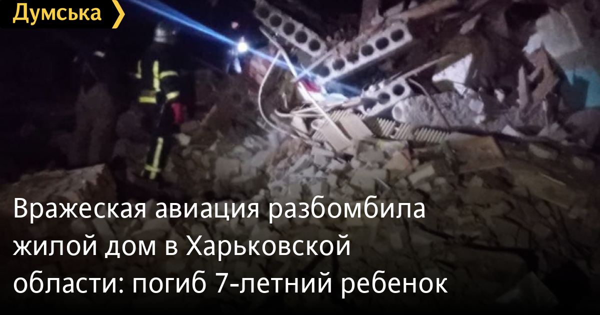 Два человека, в том числе семилетний ребенок, погибли в результате авиаудара, нанесенного оккупантами по жилому дому в селе Донец Харьковской области.