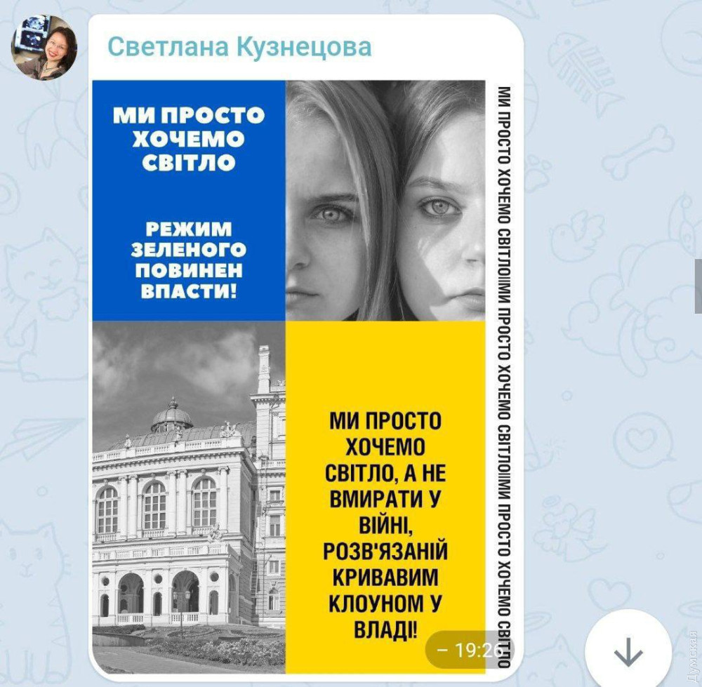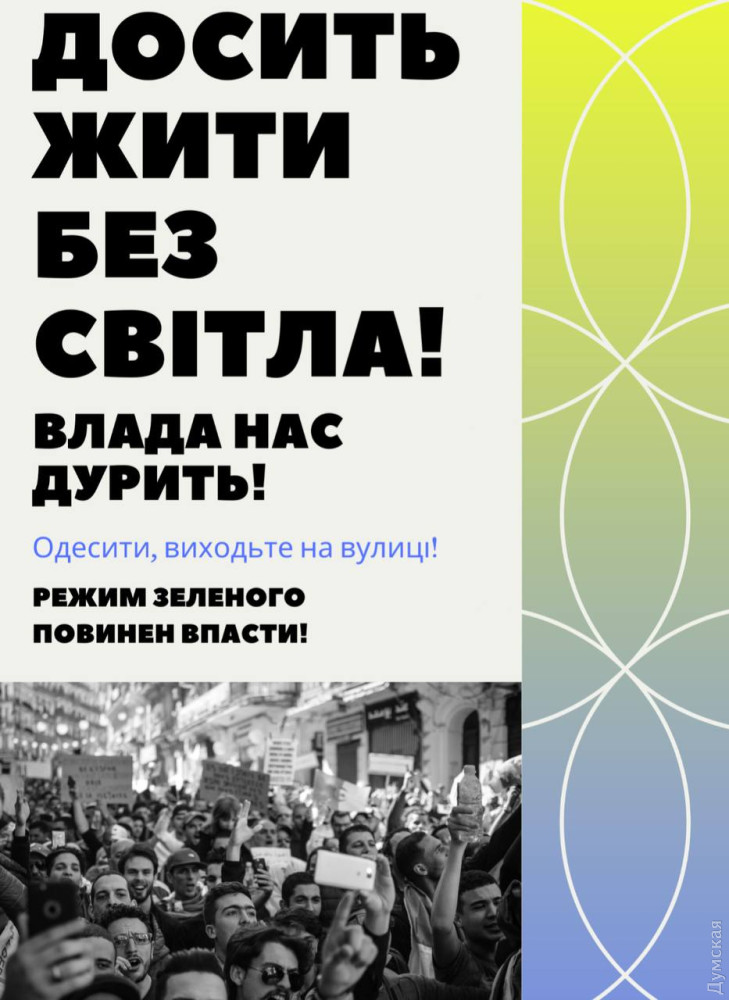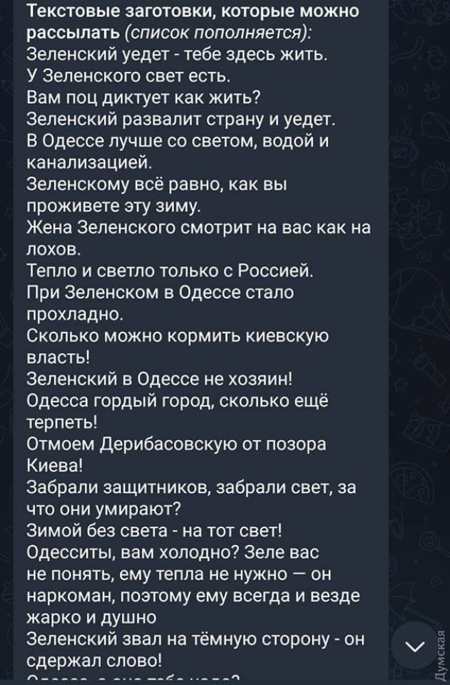 Противник проводить комплексну інформаційно-психологічну операцію, намагаючись «розкачати» суспільні настрої в Одесі та підштовхнути одеситів влаштовувати акції протесту через відключення електроенергії.