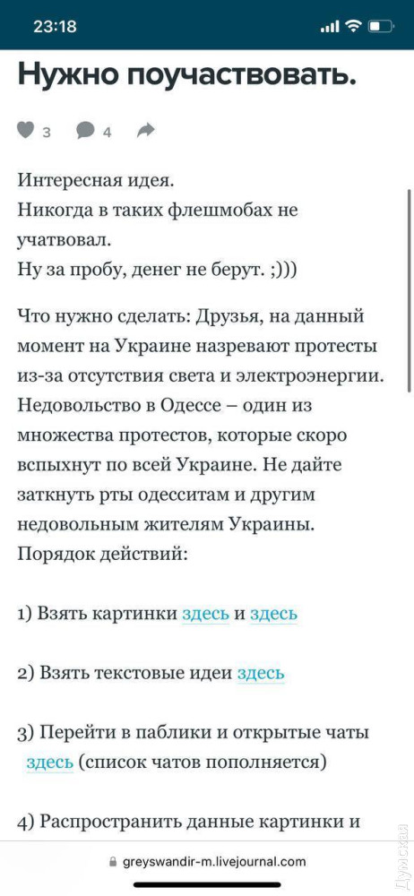 По-п'яте, рашисти підбивають одеситів влаштовувати акції протесту, перекривати вулиці та «вимагати повернути світло». Нагадаємо, нещодавно кілька таких акцій справді пройшли в Одесі, після чого їх організатором зацікавились у СБУ.