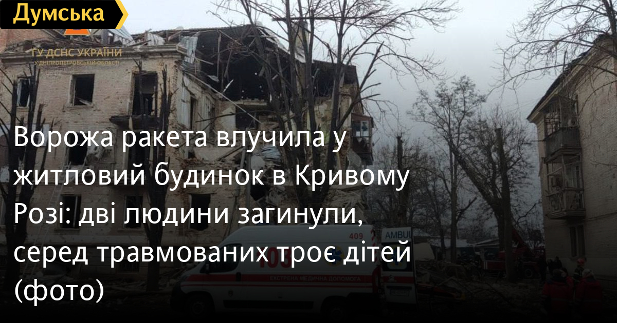 Дві людини загинули, а ще шестеро постраждали внаслідок влучання російської ракети в житловий будинок у Кривому Розі.