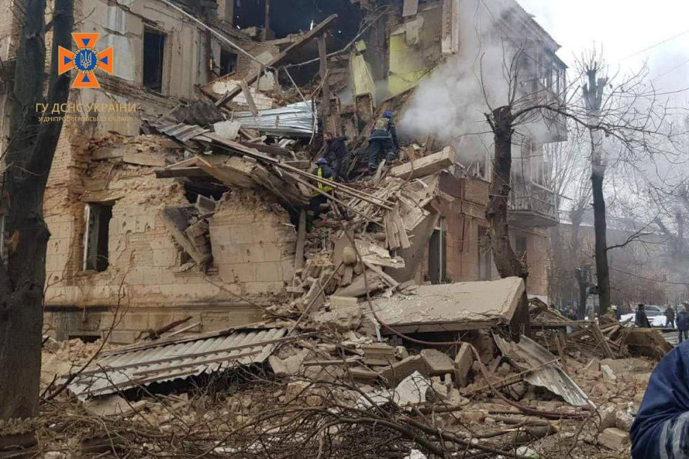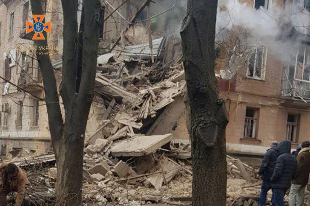 Як повідомив голова Дніпропетровської ОВА Валентин Резніченко, внаслідок влучання зруйновано один із п'яти під'їздів.