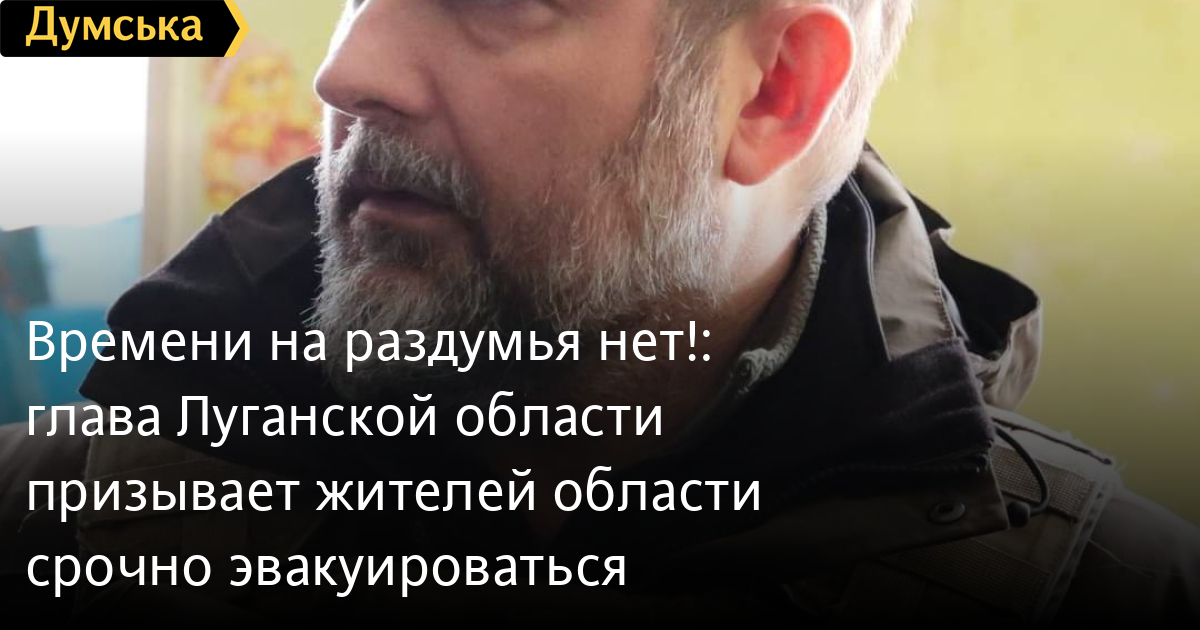 Глава Луганской областной военной администрации Сергей Гайдай просит жителей области срочно эвакуироваться в безопасные регионы, чтобы спасти свои жизни, не стать дешевой рабочей силой в рф или мобилизированными в оккупационные войска.