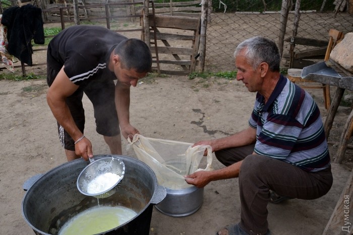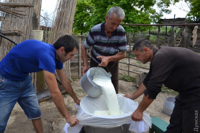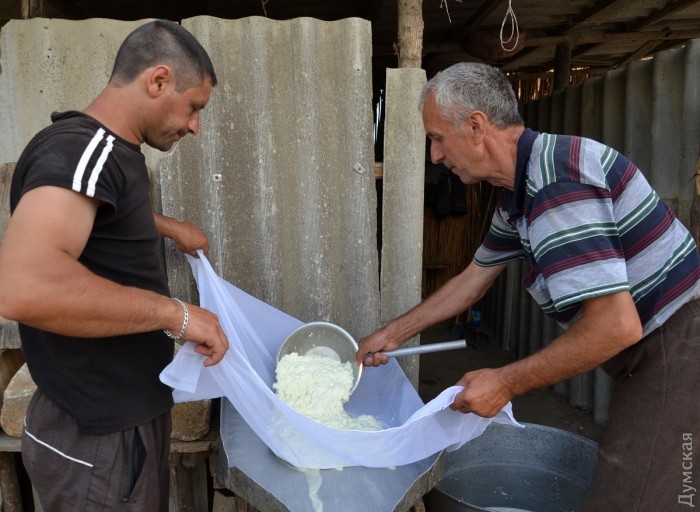 Одно из таких сел - Орловка Ренийского района. В селе живут около трех тысяч человек, большая часть которых — молдаване (правда, половина из них называют себя румынами). Овечья брынза здесь в чести — как только первая партия выстоится в рассоле, люди отказываются от приготовления коровьей брынзы, которой питались всю зиму и весну. Сейчас время брынзы овечьей, а стало быть, наступила пора настоящих мастеров-сыроделов. Сразу скажем, что в Орловке овечью брынзу готовят только мужчины. Вспоминается рекламный ролик одной кондитерской компании, где мускулистые мужчины мастерски готовят изысканный десерт для утонченных женщин. Так вот, орловские мужчины в этом плане ничуть не хуже