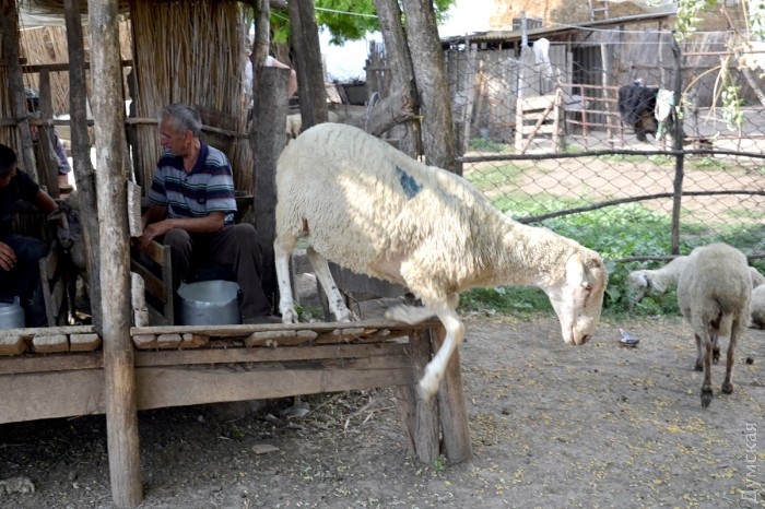 Итак, первым делом овец нужно подоить (делают это дважды в сутки – в пять часов утра и в пять вечера). Процесс это сложный, требующий физической силы и огромного терпения. Дойное стадо в кошаре у Николая составляет 200 голов (это овцы не только семьи Николая, но и других жителей села). Мужчины садятся на специально оборудованные рабочие места: в небольшой деревянной постройке их два. Животные заходят по очереди. Каждая овечка нуждается в особенном отношении, тут все как у людей — одни тихие и послушные, другие с норовом и капризами.