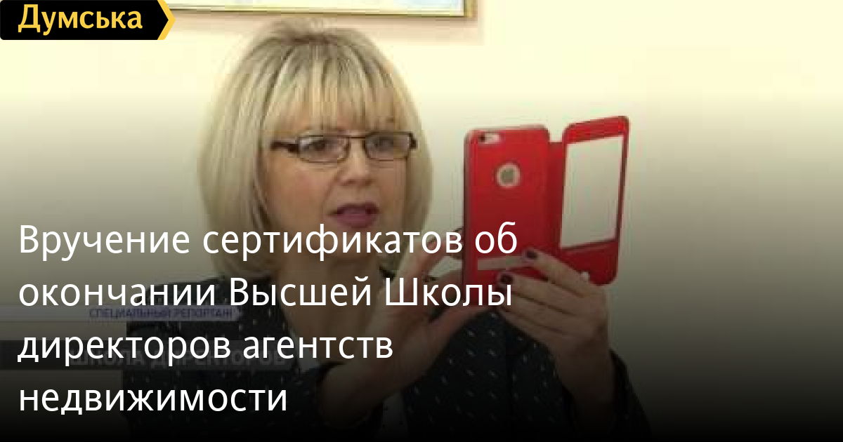 Вручение сертификатов об окончании Высшей Школы директоров агентств недвижимостиНовое слово в становлении рынка недвижимости. В Одесском региональном институте государственного управления при Президенте Украины состоялось вручение сертификатов об окончании Высшей Школы директоров агентств недвижимости. СМЕРТЬ РОССИЙСКИМ ОККУПАНТАМ! Заметили ошибку? Выделяйте слова с ошибкой и нажимайте control-enter Думская ТВ. Сюжеты: