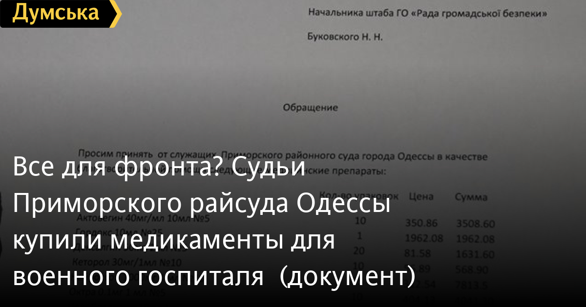 Судьи Приморского районного суда Одессы передали военно-медицинскому клиническому центру Южного региона медикаменты общей стоимостью 28 тысяч гривен.