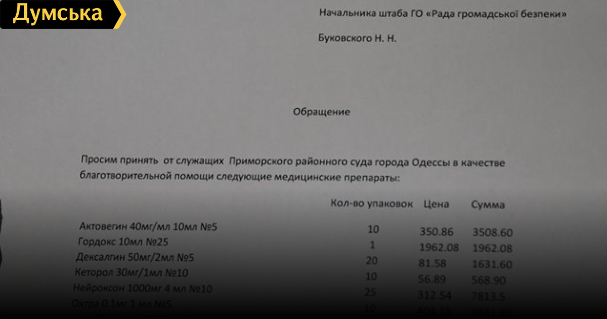 Все для фронта? Судьи Приморского райсуда Одессы купили медикаменты для военного госпиталя (документ)