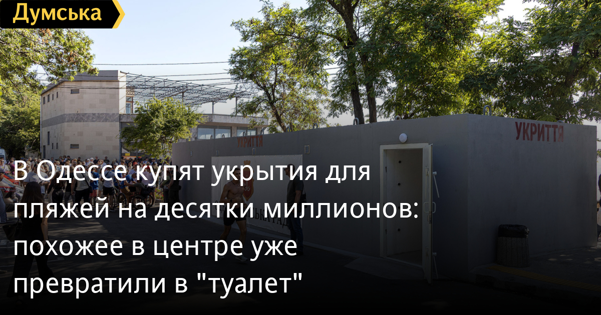 В Одессе купят укрытия для пляжей на десятки миллионов: похожее в центре уже превратили в «туалет»Установить новые мобильные укрытия на одесском побережье к началу курортного сезона планируют в мэрии. На эти цели планируют направить более 35 млн грн, об этом стало известно на заседании профильной комиссии горсовета. Точное количество конструкций пока обсуждается. По словам и.о. директора департамента муниципальной безопасности Александра Куприна, сейчас речь идет о 5–7 объектах. Конкретные адреса чиновник назвать тоже не смог, подтвердив установку лишь на двух локациях — это муниципальные пляжи на Ланжероне и 13-й станции Фонтана. Но Куприн заверил депутатов, что они будут соответствовать всем государственным стандартам. «Они предполагают размещение от 50 до 100 человек. К сожалению, устанавливать на побережье большие укрытия на 200-300 человек у нас нет технической возможности», — отметил Куприн. Если разделить общую сумму на количество планируемых объектов, стоимость одного укрытия составит от 5 до 7 млн грн. Это вызвало вопросы у профильной комиссии, так как никакой конкретики про технические характеристики озвучены не были. Вопрос планируют рассмотреть повторно на следующем заседании — от профильного департамента ждут четких расчетов. После этого проект вынесут на рассмотрение депутатов на очередной сессии. Такую спешку объяснили необходимостью подготовки к курортному сезону. Также обсуждается возможность обязать арендаторов платных пляжей устанавливать такие укрытия за собственный счет, чтобы снизить нагрузку на городской бюджет. В то же время, пока чиновники обсуждают многомиллионные закупки, состояние некоторых уже установленных в городе убежищ вызывает шок у одесситов. Так, мобильное укрытие в самом центре города — на Соборной площади — фактически превратилось в общественный туалет. По словам очевидцев, внутри конструкции стоит невыносимый запах, а стены и пол покрыты нечистотами и следами крови.