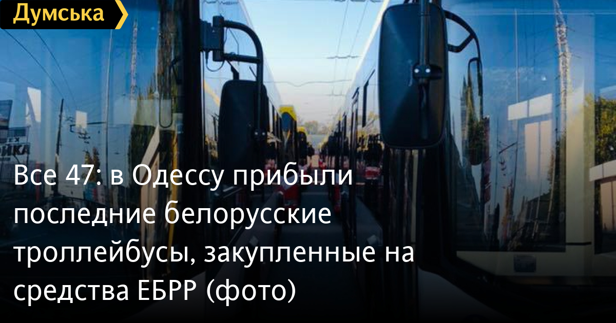 Все 47 низкопольных троллейбусов БКМ-321, произведенных в Беларуси и приобретенных КП «Одесгорэлектротранс» на средства кредита ЕБРР, прибыли в наш город.