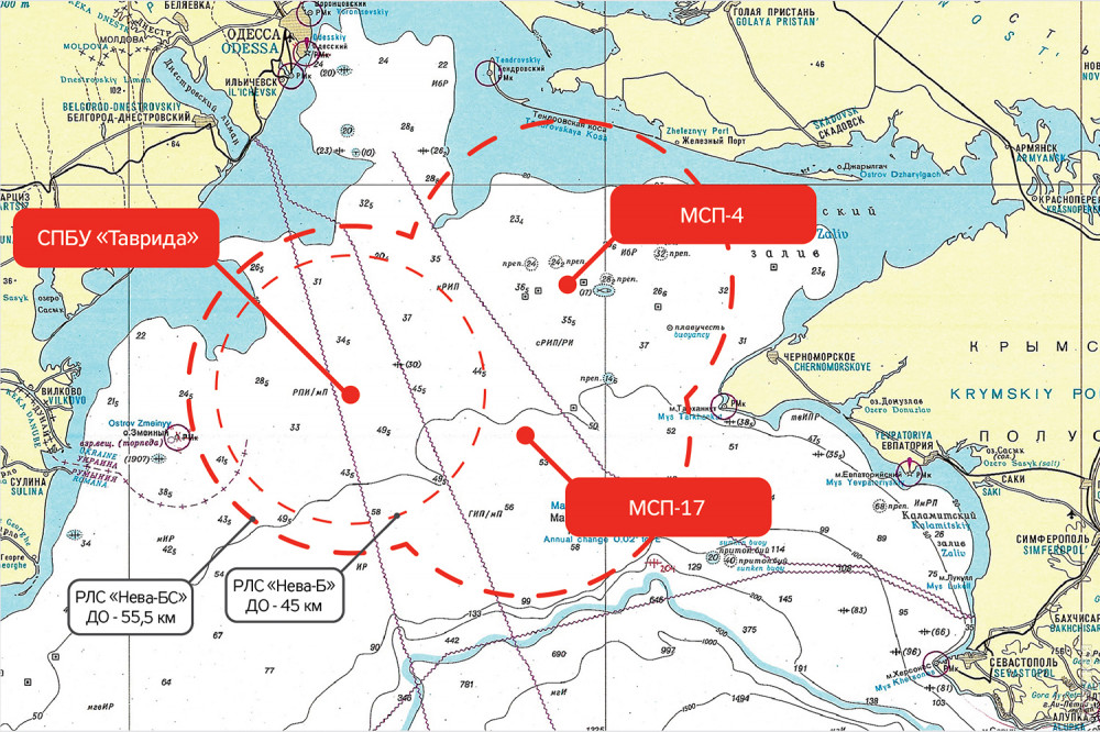 Вышки стали удобным плацдармом для контроля за передвижением любых объектов не только в воде, но под водой, а также в воздухе. Радиотехнические системы установлены на самоподъемной буровой установке (СПБУ) «Таврида» и морских стационарных платформах МСП-17 месторождения «Штормовое», а также на МСП-4 месторождения «Голицинское».