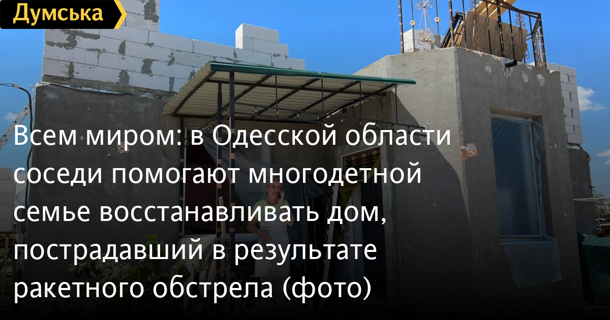 Жители села Маяки Одесской области помогают многодетной семье Степовых восстановить жилье, пострадавшее во время ракетного обстрела 27 июня.