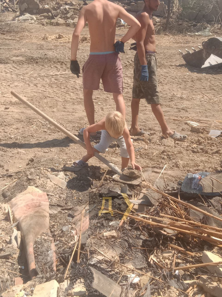 Во дворе Степовых кипит работа. Соседи, родственники и старшие сыновья, 17-летний Кирилл, 14-летний Никита и пятилетний Ваня, помогают восстанавливать дом. Мужчины носят кирпичи и заново возводят стены, женщины убирают осколки.