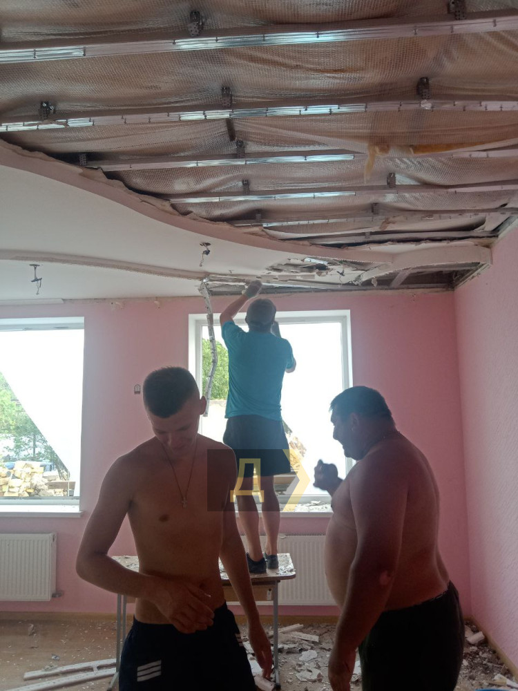 «Человек десять пришло, разобрали сначала то, что обвалилось, теперь вот собираем обратно, — поясняет отец семейства Сергей Степовой. — Каждый день приходят все новые друзья. А еще кумовья, братья, вот потихоньку начинаем восстанавливать. Все своими силами, потому что очень дорого. Приехала бригада, подсчитала стоимость ремонта, я такую сумму не потяну. Решили материалы купить, хоть они и дорогие, а делать уже будем сами».