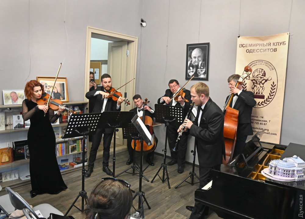 Весь вечер у рояля был ведущий концертмейстер одесской оперы, лауреат международных конкурсов Игорь Парада. А завершился концерт выступлением камерного ансамбля солистов оркестра ОНАТОБ с музыкой Моцарта, Гуно, популярными танго и «Мелодией» Мирослава Скорика.