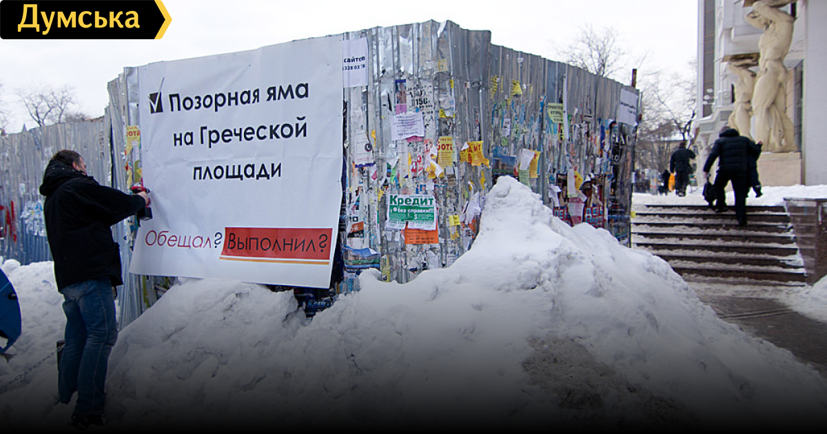 Яма на Греческой действительно позор. Давно бы арестовали по суду счета Черного, пока не отреставрирует площадь. Ну, так не петрушка же этим заниматься будет. На Сахалин его отправить нужно. Молодцы УДАРовцы!
