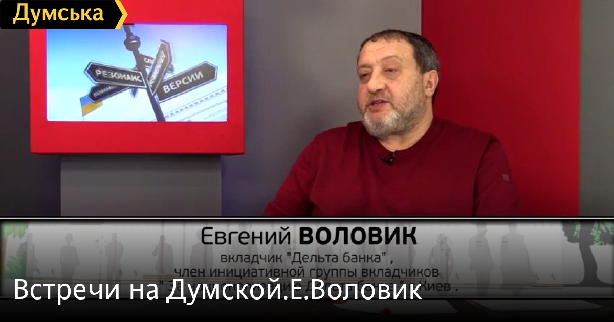 Евгений Воловик-вкладчик «Дельта банка»,член инициативной группы вкладчиков «За национализацию Дельта банка»,г.Киев СМЕРТЬ РОСІЙСЬКИМ ОКУПАНТАМ! Помітили помилку? Виділяйте слова з помилкою та натискайте control-enter Думская ТВ. Встречи на Думской: