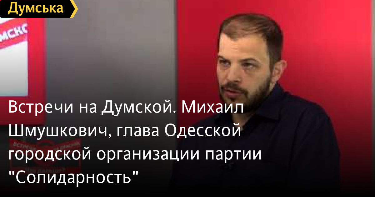 Встречи на Думской. Михаил Шмушкович, глава Одесской городской организации партии «Солидарность»Встречи на Думской. Михаил Шмушкович, глава Одесской городской организации партии «Солидарность» Блок Петра Порошенко СМЕРТЬ РОССИЙСКИМ ОККУПАНТАМ! Заметили ошибку? Выделяйте слова с ошибкой и нажимайте control-enter Думская ТВ. Встречи на Думской: