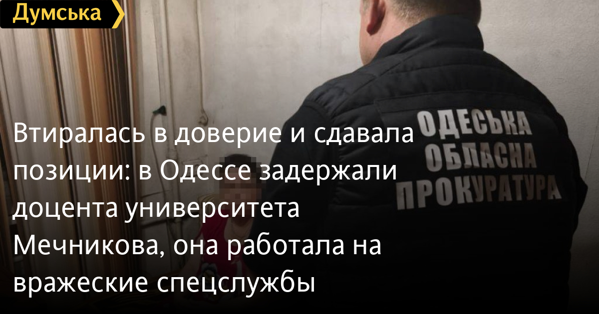 Втиралася в довіру і здавала позиції: в Одесі затримали доцента університету Мечникова, вона працювала на ворожі спецслужбиДоцентка одеського університету працювала на ворога, її затримали під час спроби втечі за кордон. Жінка коригувала удари по місту та вербувала військових, зараз вона знаходиться під вартою, повідомили в прокуратурі. Головним завданням 52-річної жінки було виявляти пункти дислокації військових на території міста. Щоб зібрати дані обвинувачувана почала спілкуватися з військовими, які були її сусідами. Надалі мала їх завербувати, щоб отримати докладну карту бойових дій. Затримана була кандидатом філологічних наук, викладала російську мову. За інформацією джерел «Думської», працювала в університеті Мечникова. Агенти фсб зацікавилися викладачкою ще у 2014 році, вона у соціальних мережах закликала до захоплення Одеси. В обмін на співпрацю окупанти обіцяли їй посаду викладачки російської мови в московському вищі, розповіли в СБУ. Затримали доцентку коли вона планувала через країни ЄС потрапити до росії, при собі у неї були квитки. Їй загрожує довічне ув'язнення за державну зраду в умовах воєнного стану (ч.2 ст.111 Кримінального кодексу). СМЕРТЬ РОСІЙСЬКИМ ОКУПАНТАМ! Помітили помилку? Виділяйте слова з помилкою та натискайте control-enter |