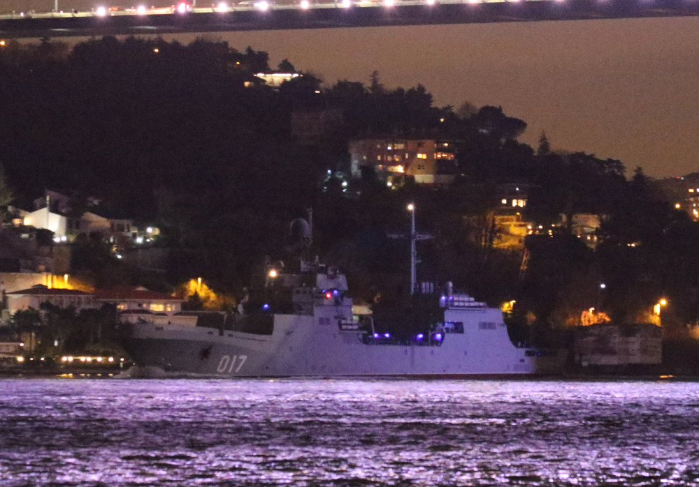 Еще три российских БДК из состава 121 бригады Северного флота РФ сегодня ночью вошли в Черное море.